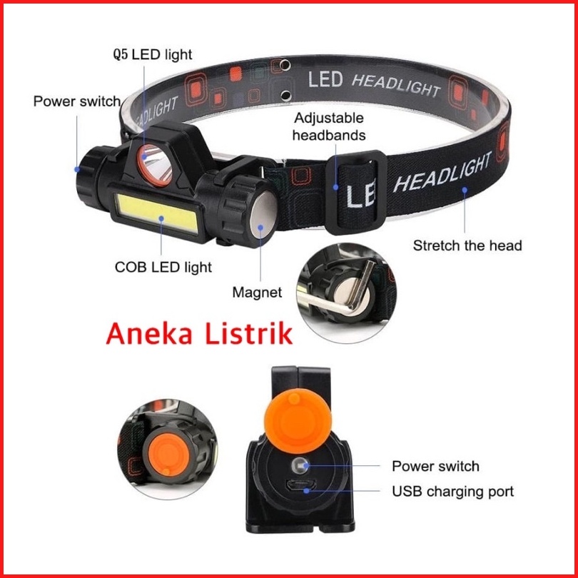 Senter Kepala Led Cas Xpe Super Terang Murah Headlamp Cob Rechargeable Plus Magnet