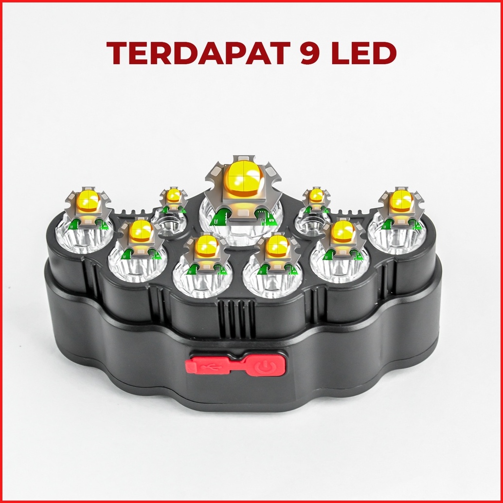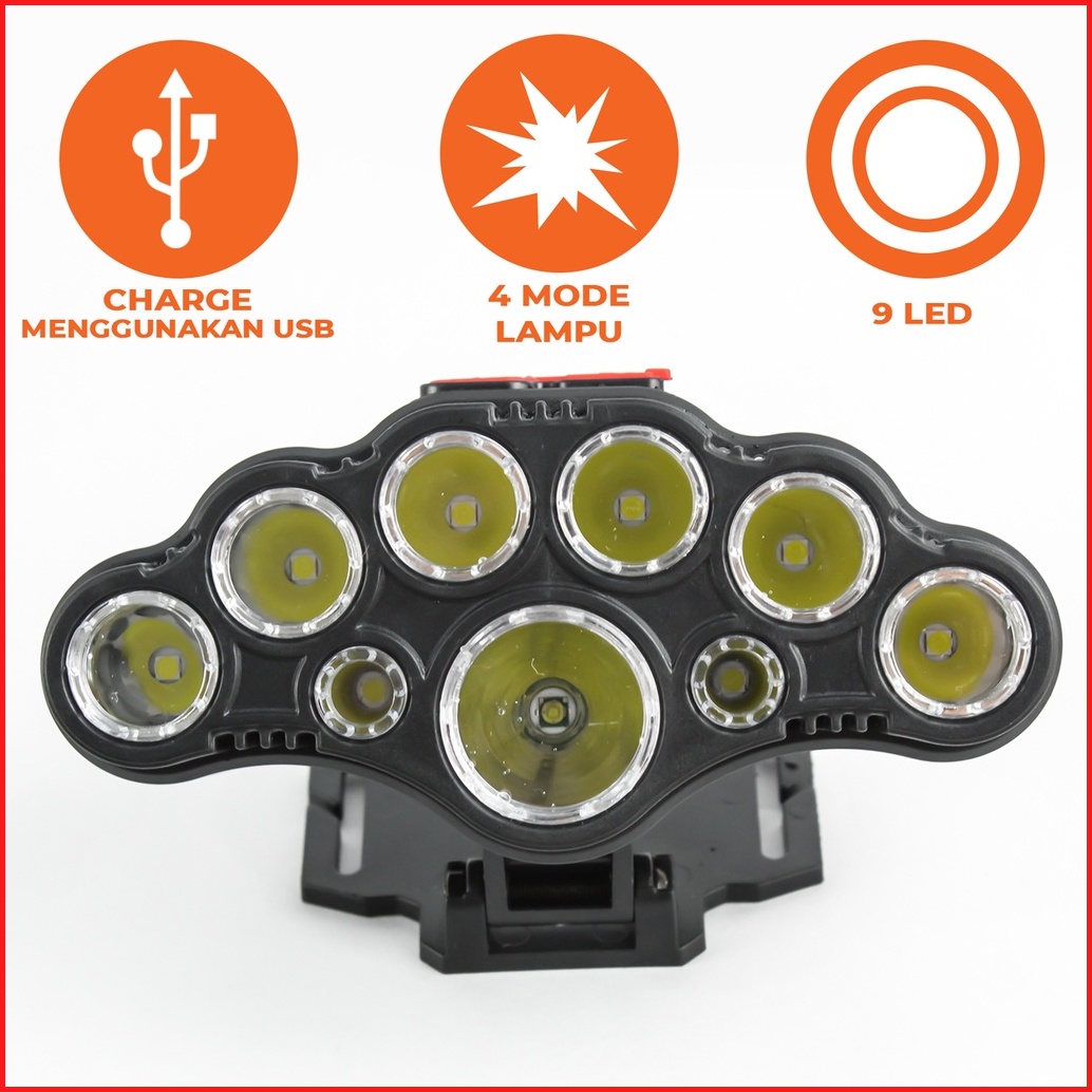 Suksestech Senter Kepala Cas 9 Led 4 Mode Free Usb Sh-t09