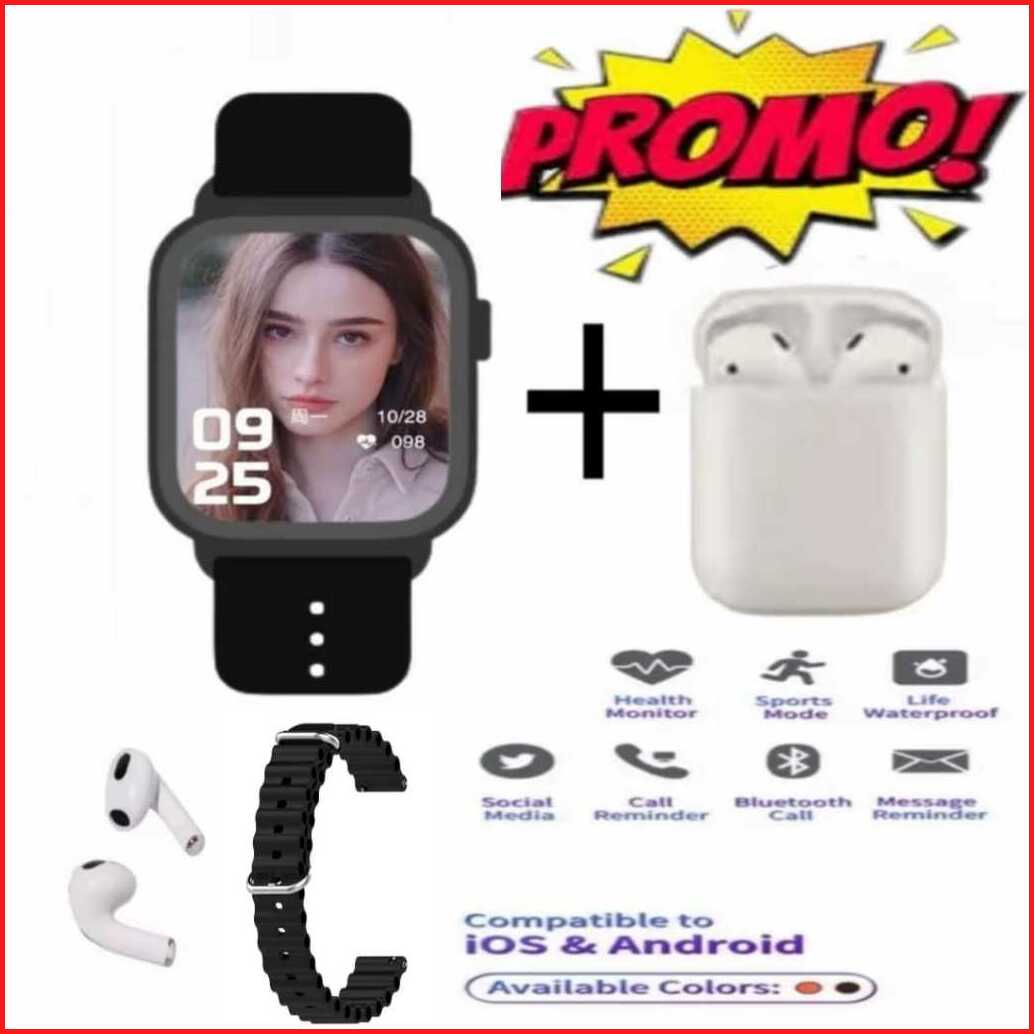 Smartwatch I8 Ultra Watch 8 Free 2 Tali Plus Earphone Tws Full Layar Ada Kalkulator