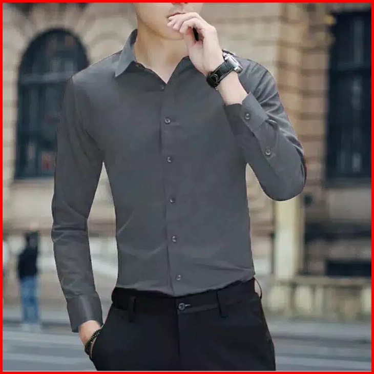 Kemeja Pria Slim Fit Lengan Panjang Polos Jusman
