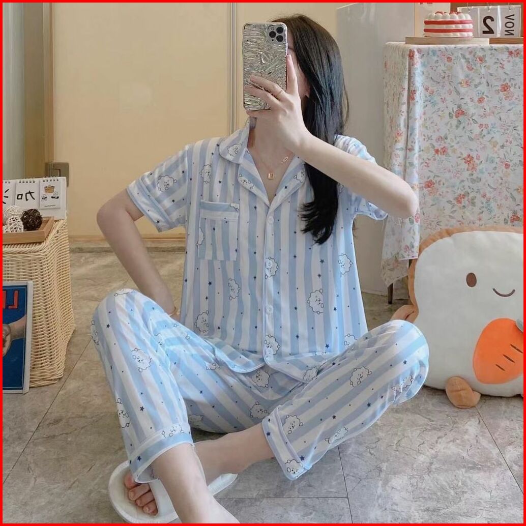 Exclusive Limited Edition Bt21 Baju Tidur Wanita Piyama Set Kemeja Celana Panjang Baju Lengan Pendek Baju Tidur Kekinian