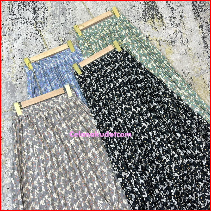 Jasmine Rok Plisket Panjang Bahan Hyget Premium Wanita Stretch Melar Motif Bunga Cantik