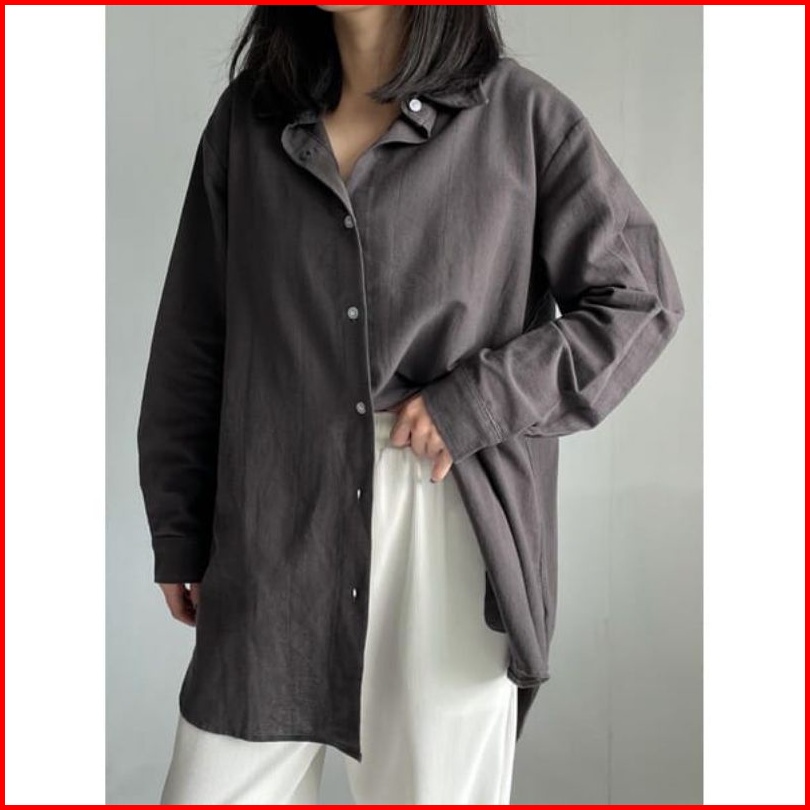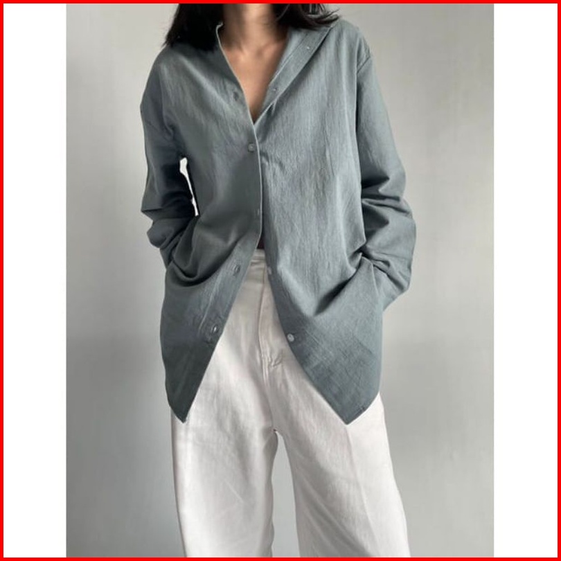 Kemeja Oversize Linen Wanita - Linen Shirt - Atasan Wanita Lengan Panjang 990