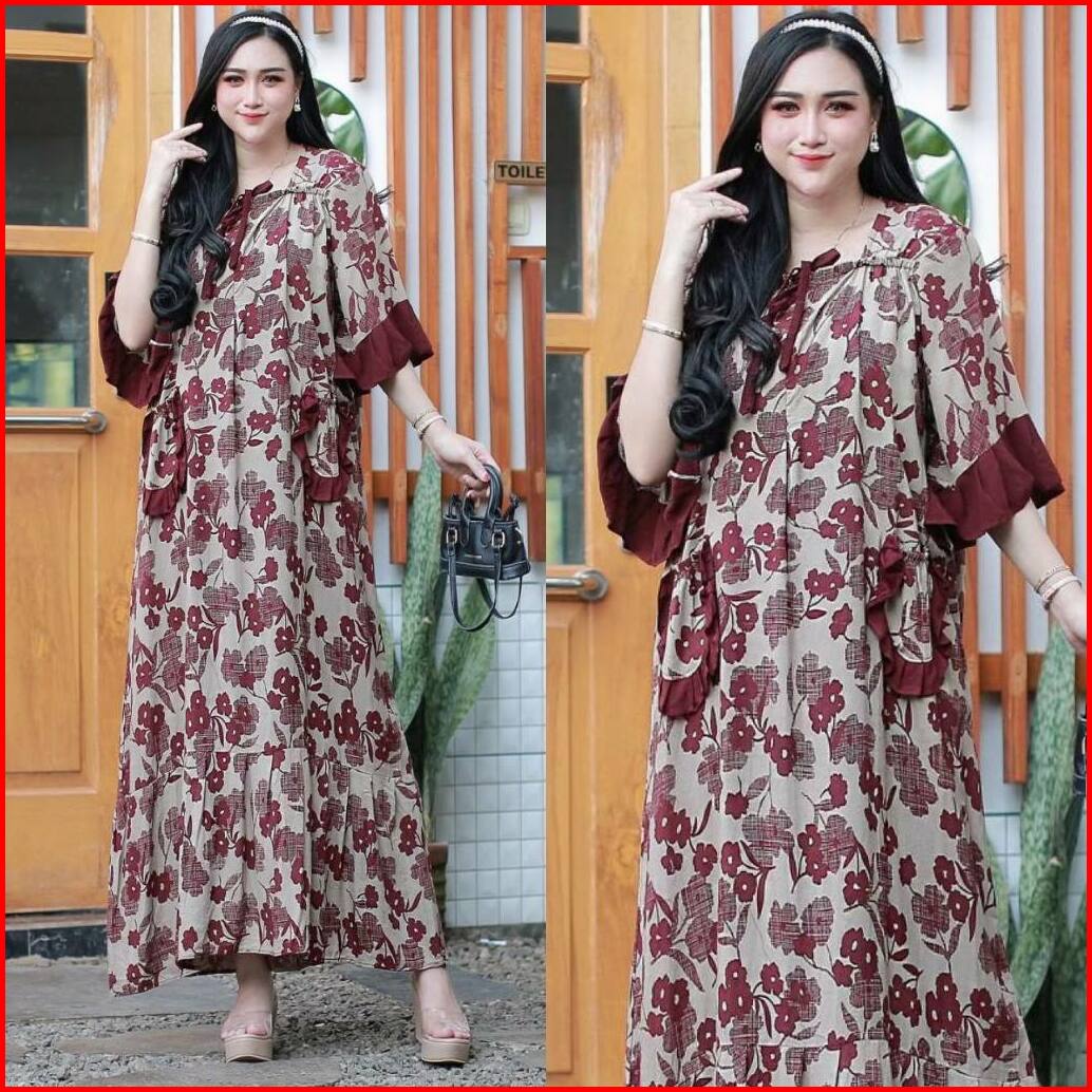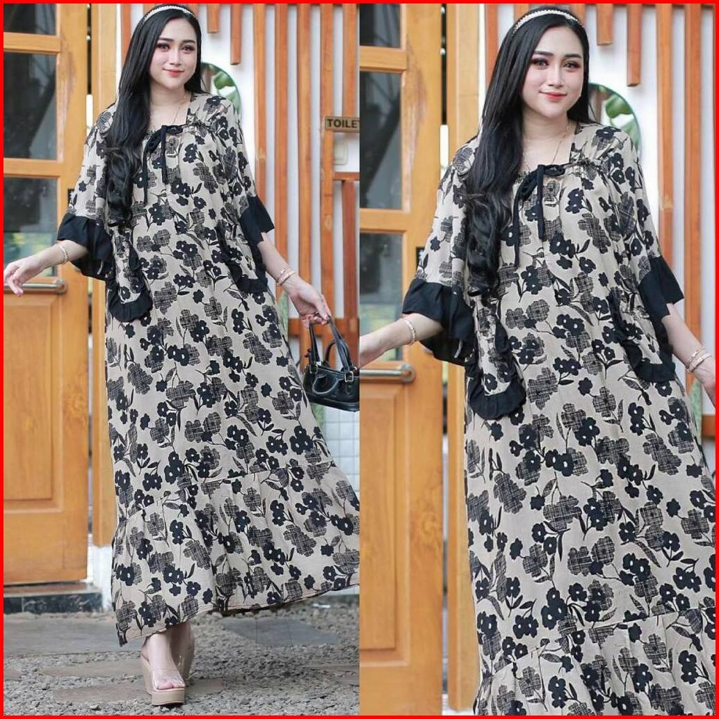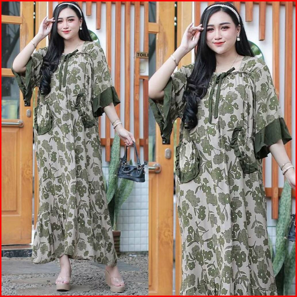 Dress Lily Lalisa Lengan Terompet Jumbo Ld 125cm Bahan Rayon Busui Resleting Bumil Kekinian