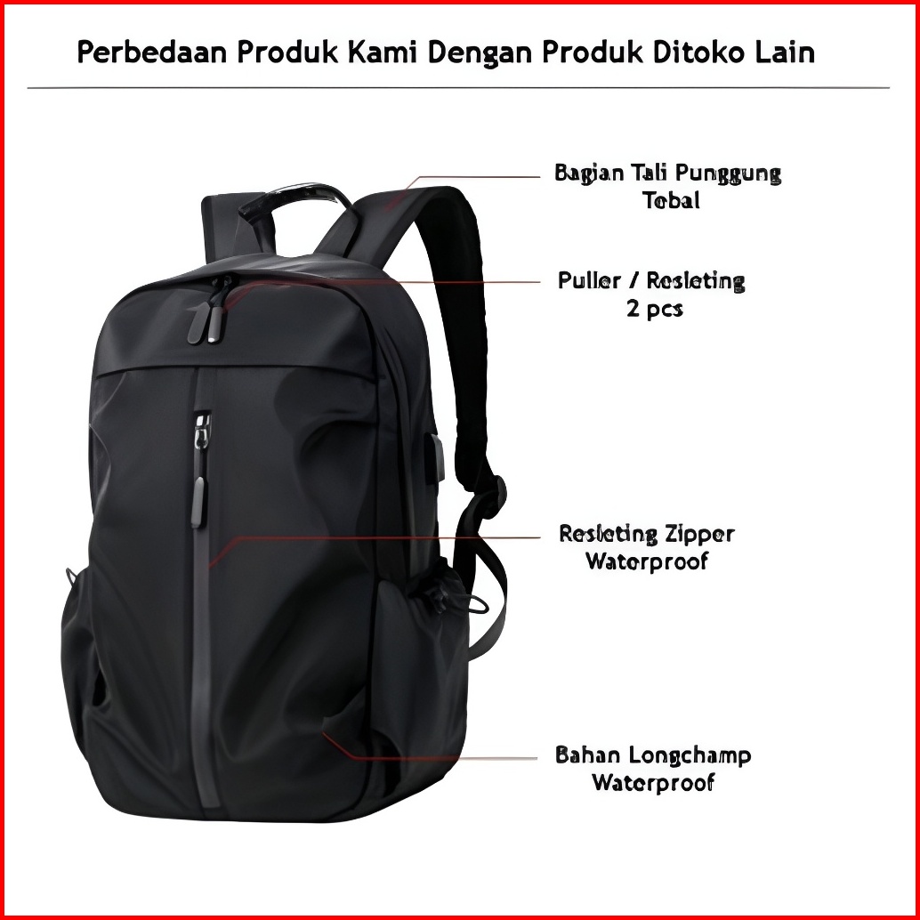Dippie - Tas Ransel Backpack Gendong Pria Sekolah Kerja Kuliah Laptop Keren Bahan Waterproof Anti Air