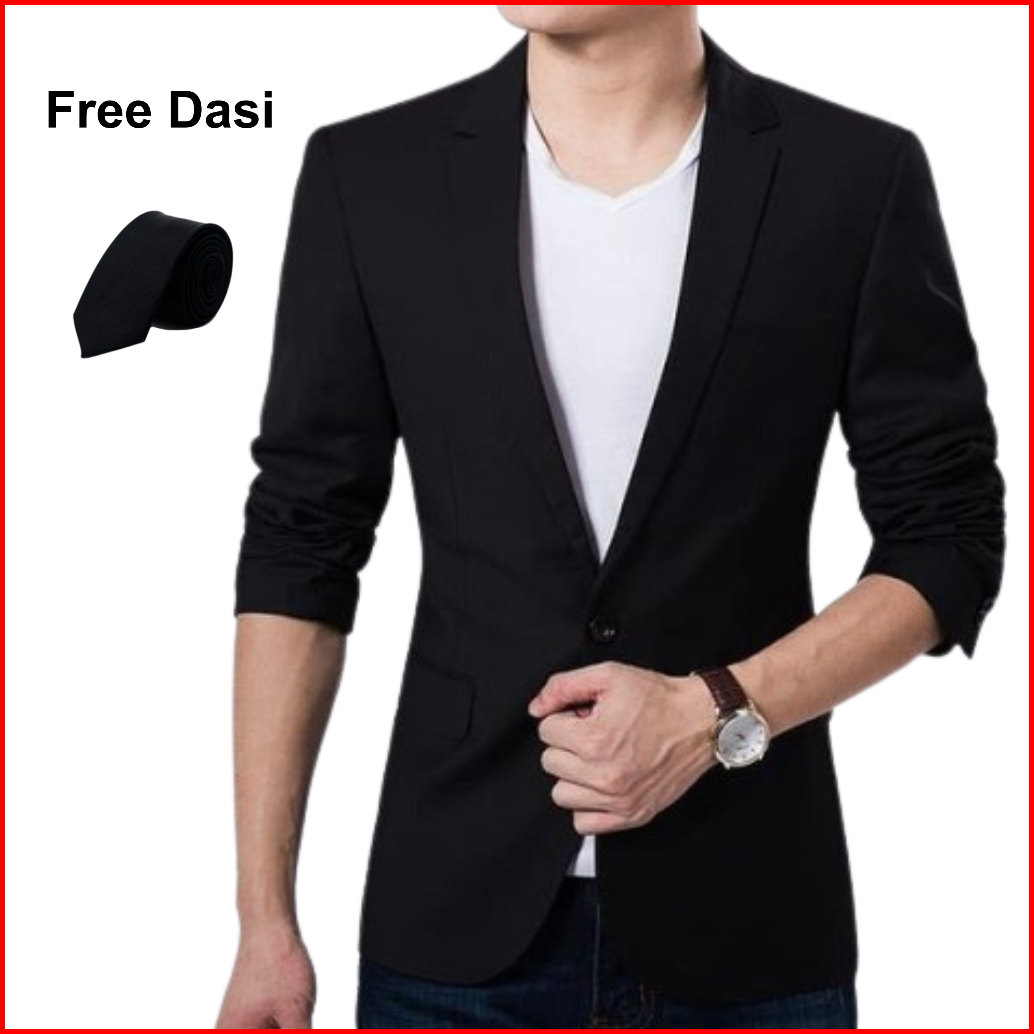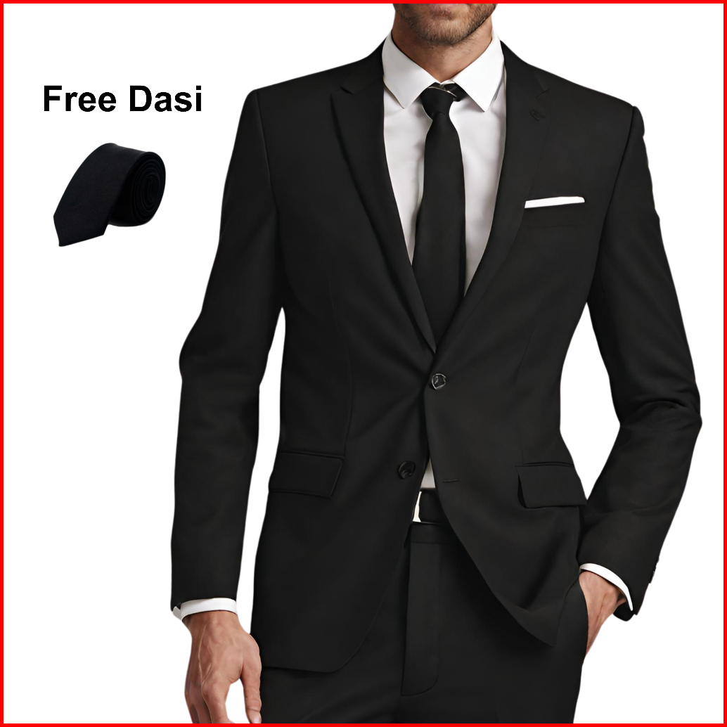 Jas Pria Hitam Slimfit Formal Free Dasi Untuk Wisuda Pernikahan S M L Xl Xxl