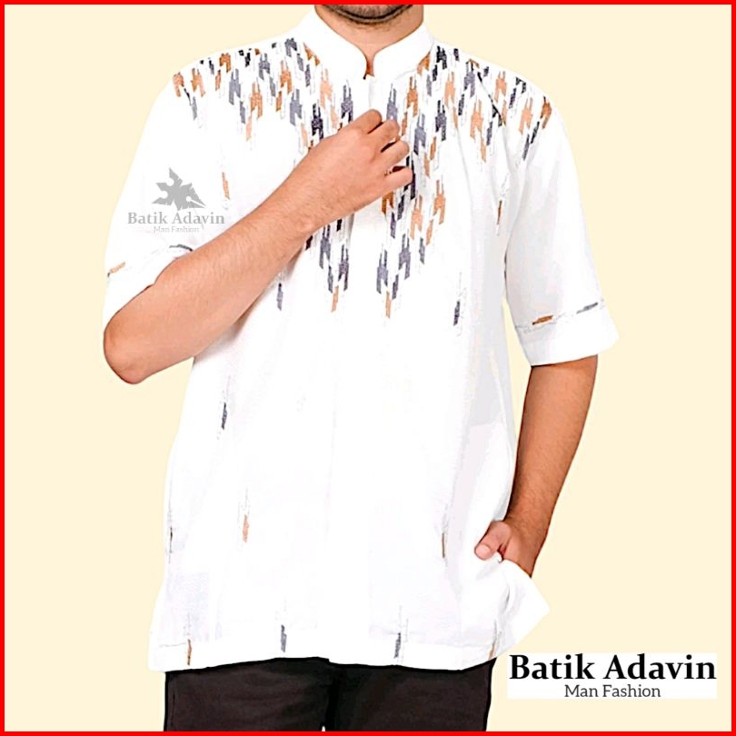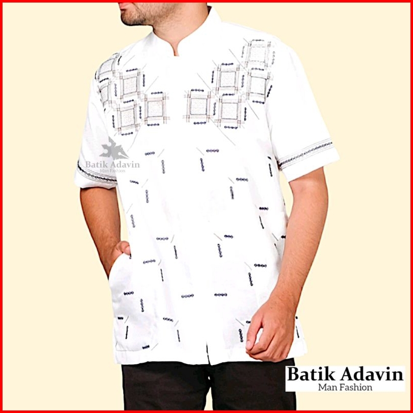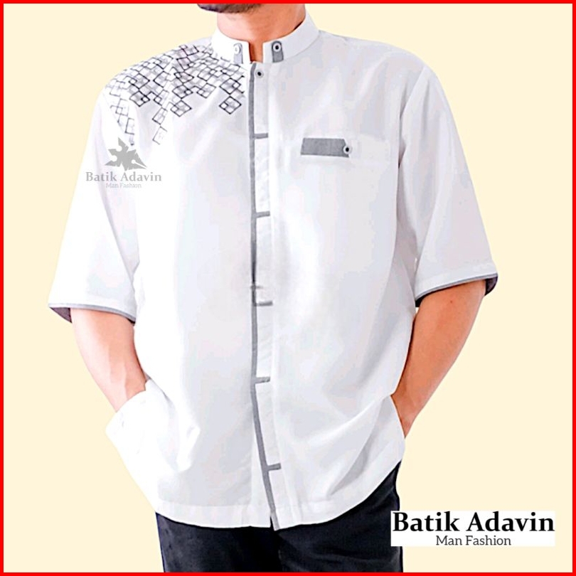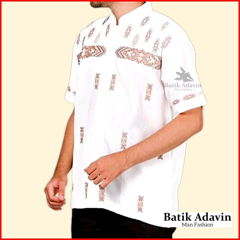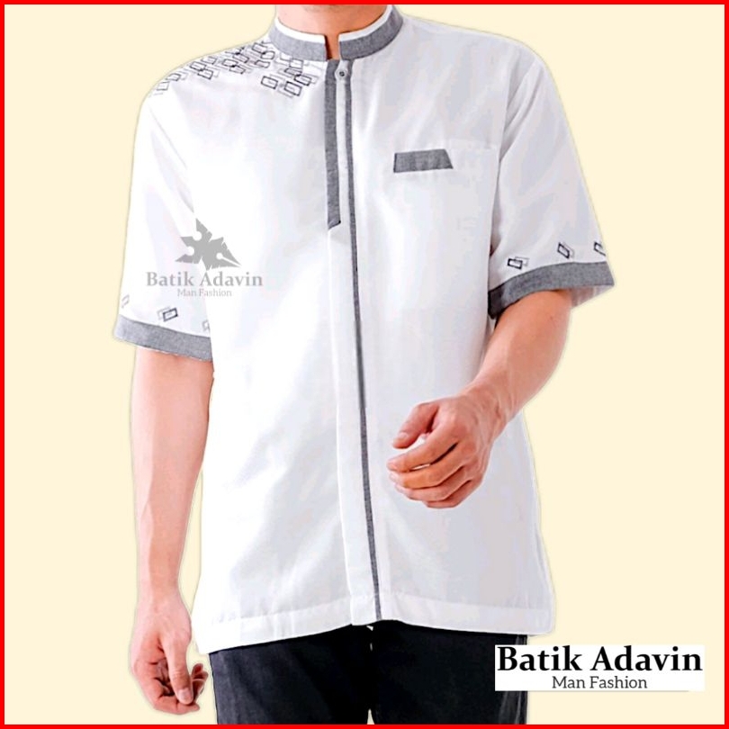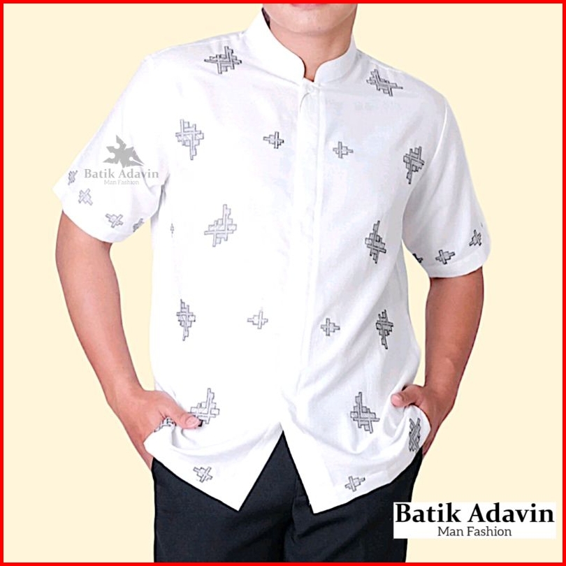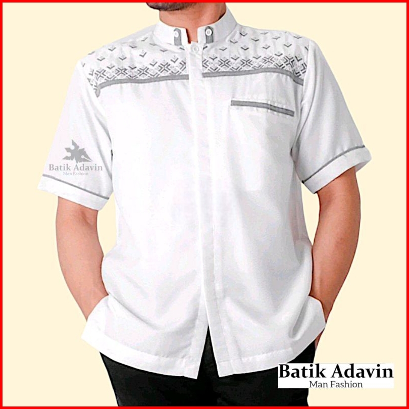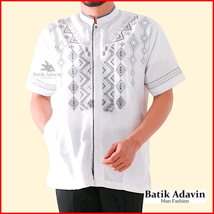 Baju Koko Pria Lengan Pendek Bahan Poli Katun Motif Bordir Warna Putih Tulang