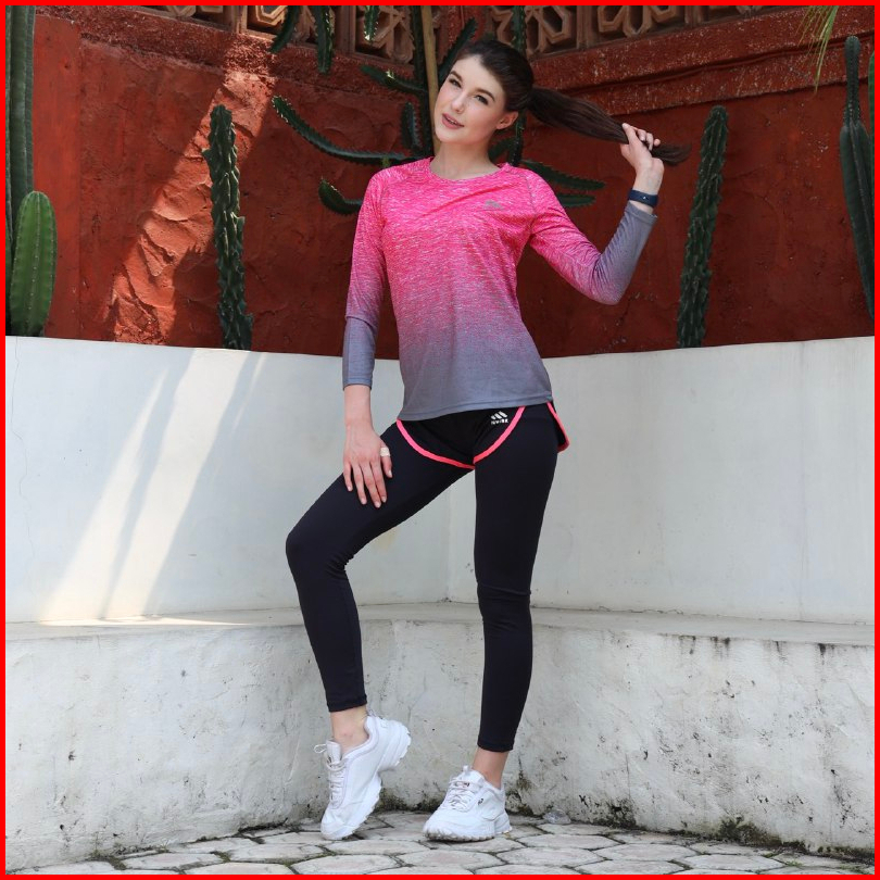 Maniak Baju Olahraga Muslimah Lengan Panjang Wanita 2 Warna Fitness Senam Running Kardio Badmintoon Mp03 L S