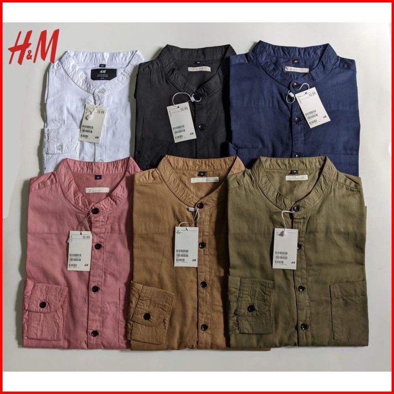 Kemeja Panjang Kerah Shanghai Kemeja Polos Pria Shanghai H M Soft Twill Katun