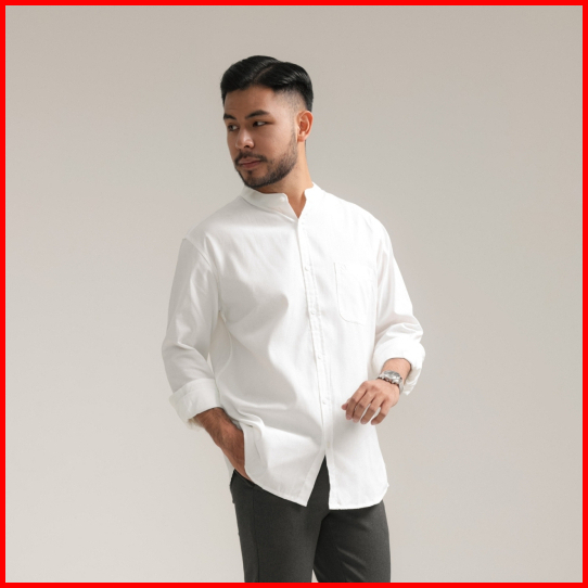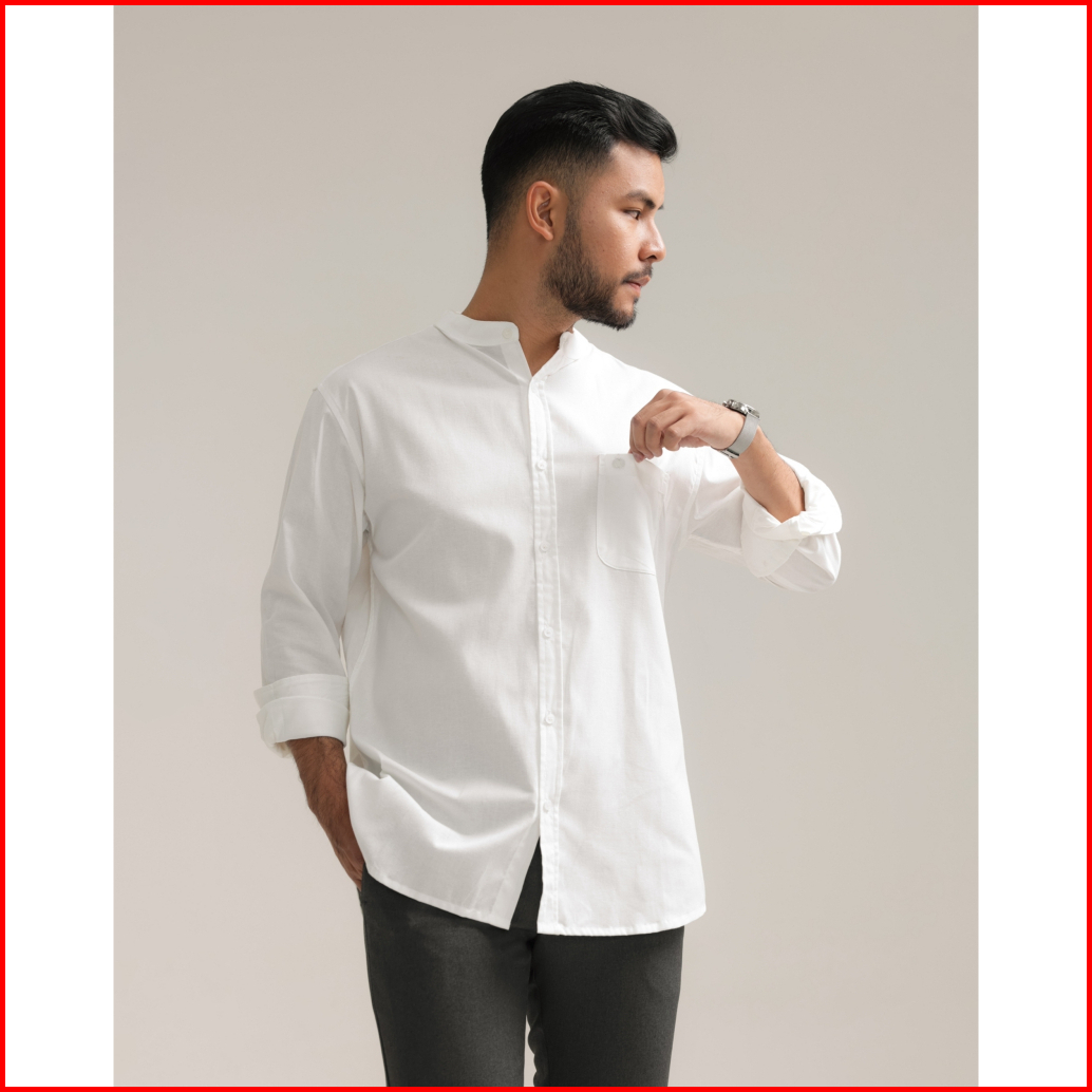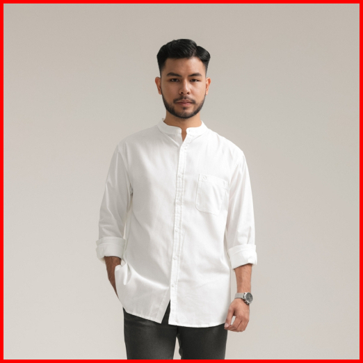 Broodis Kemeja Koko Pria Shanghai Polos Oxford Putih Cozy Series Cotton White Lengan Panjang