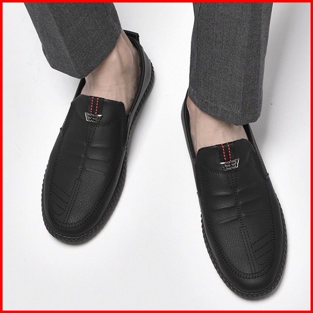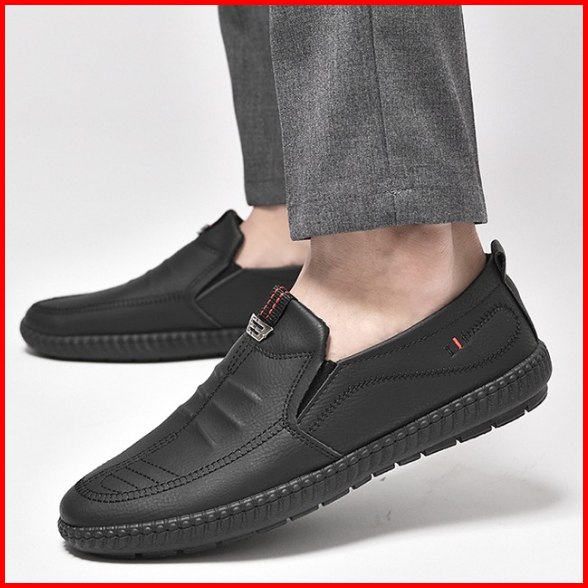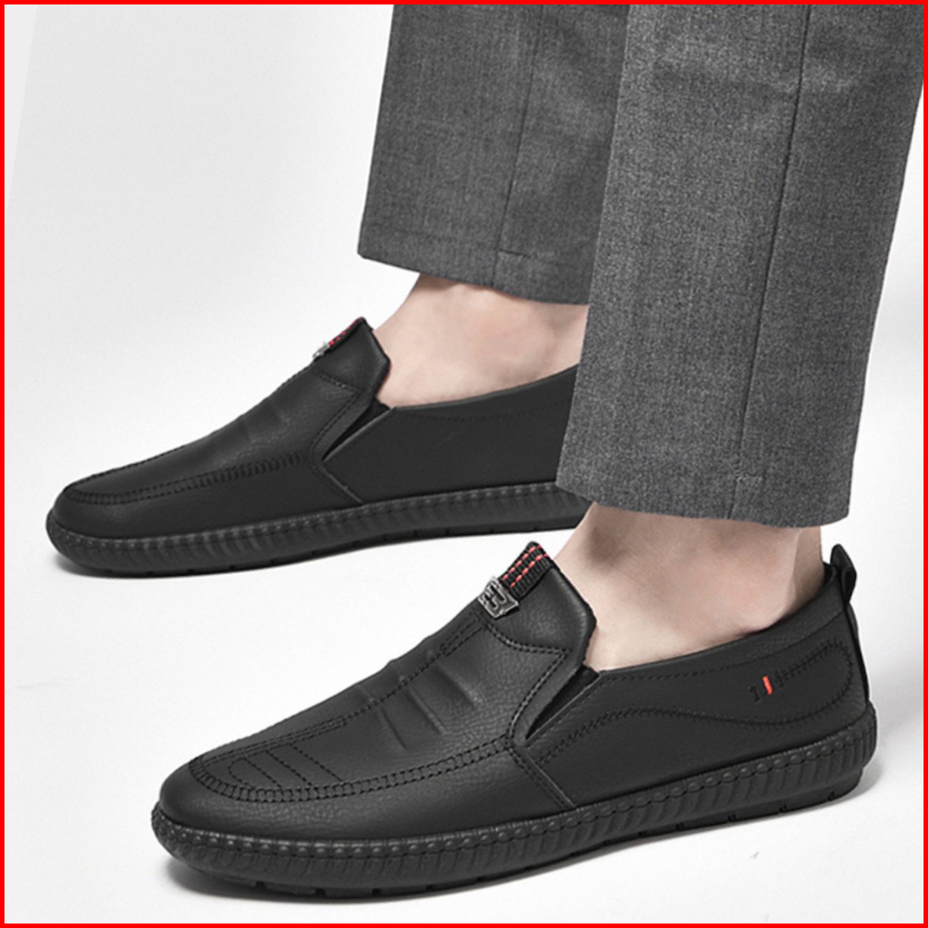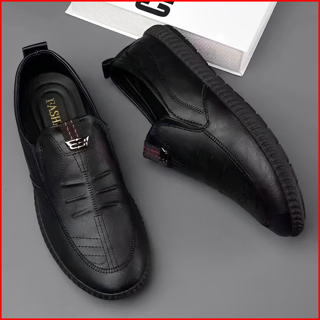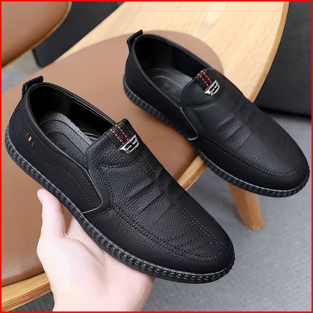Highland Sepatu Slip On Pria Casual Hitam Sepatu Formal Kulit Sepatu Pantofel Pria Kerja Kantoran Sepatu Slop Cowok Mode