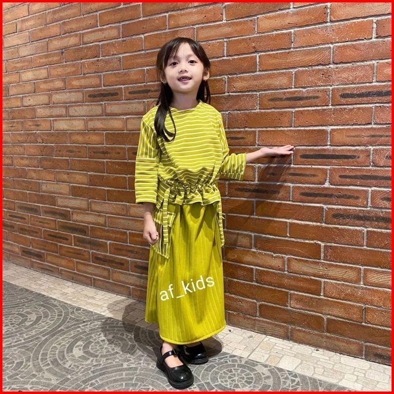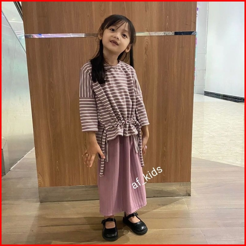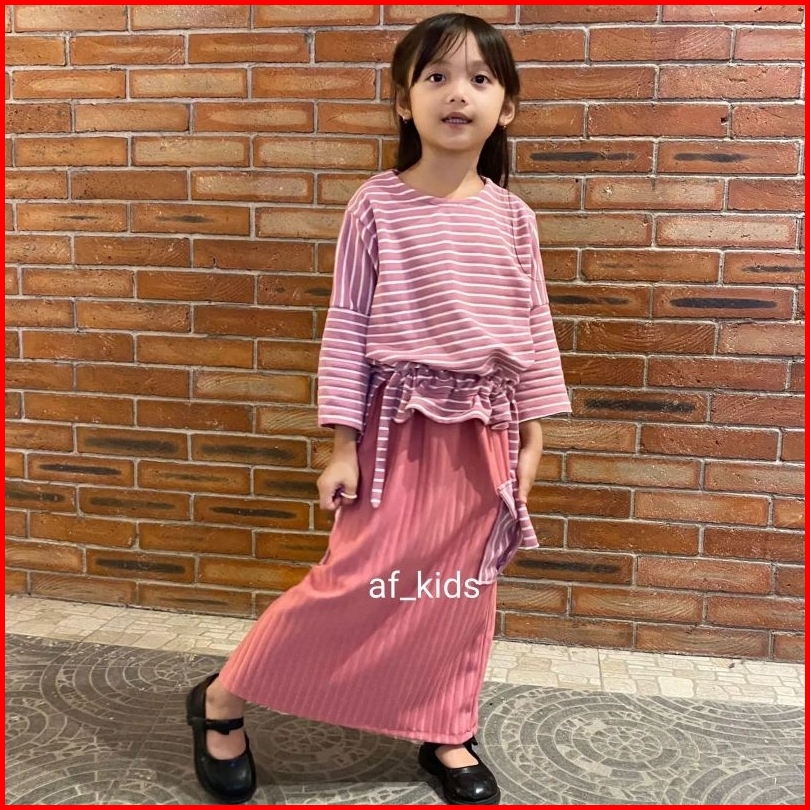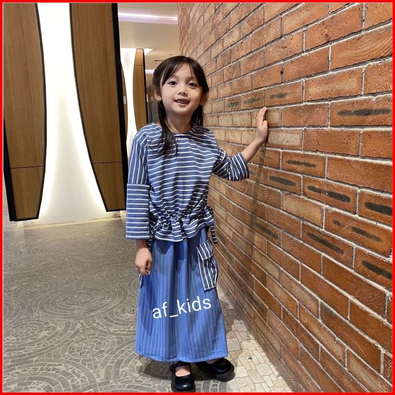 Setelan Baju Rok Cargo Anak Perempuan Strip Zavira 1-10 Tahun