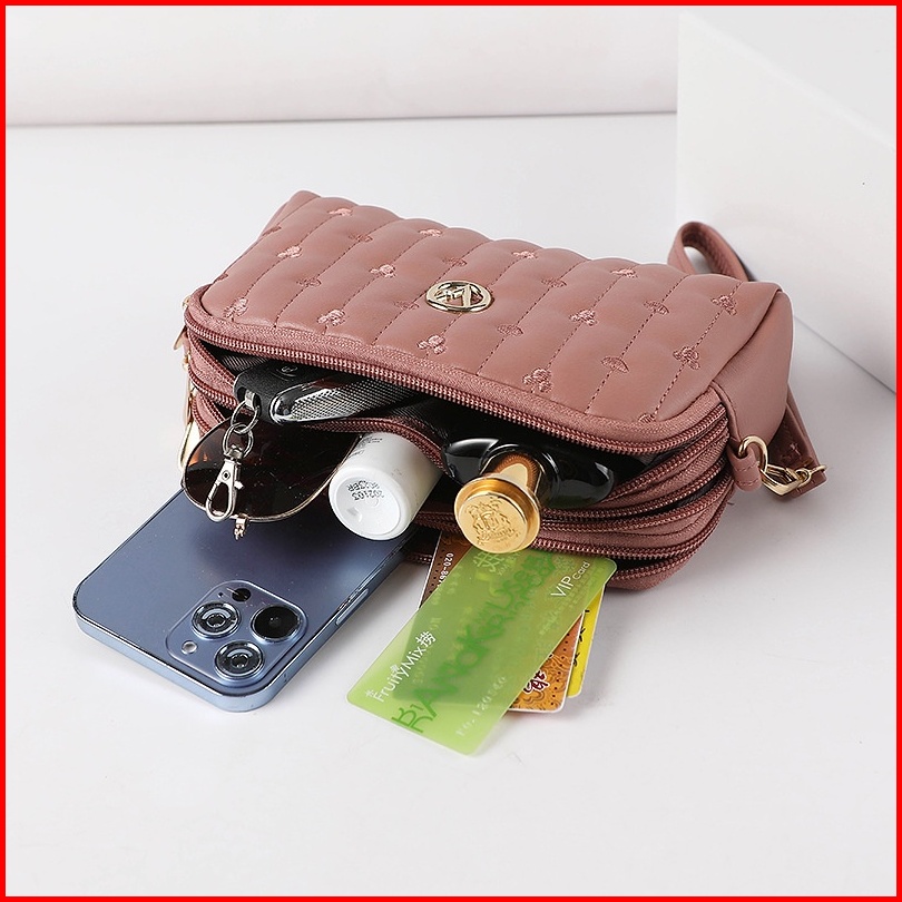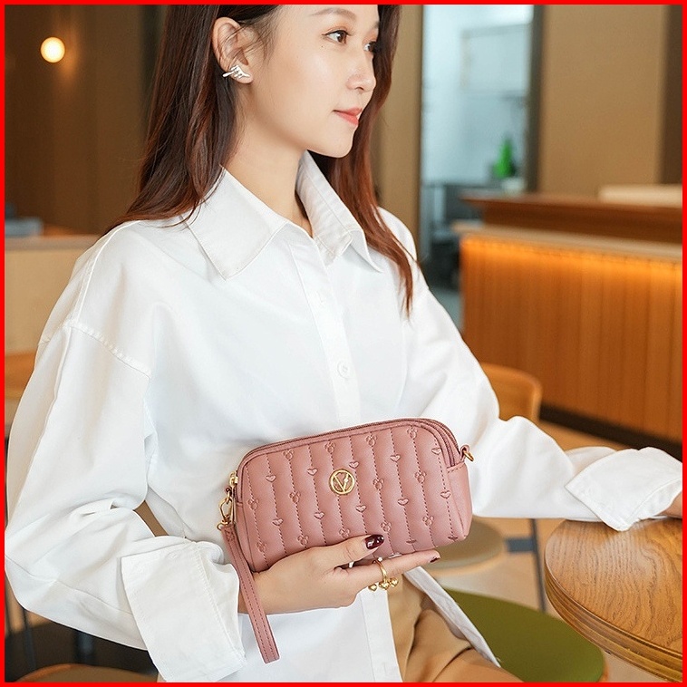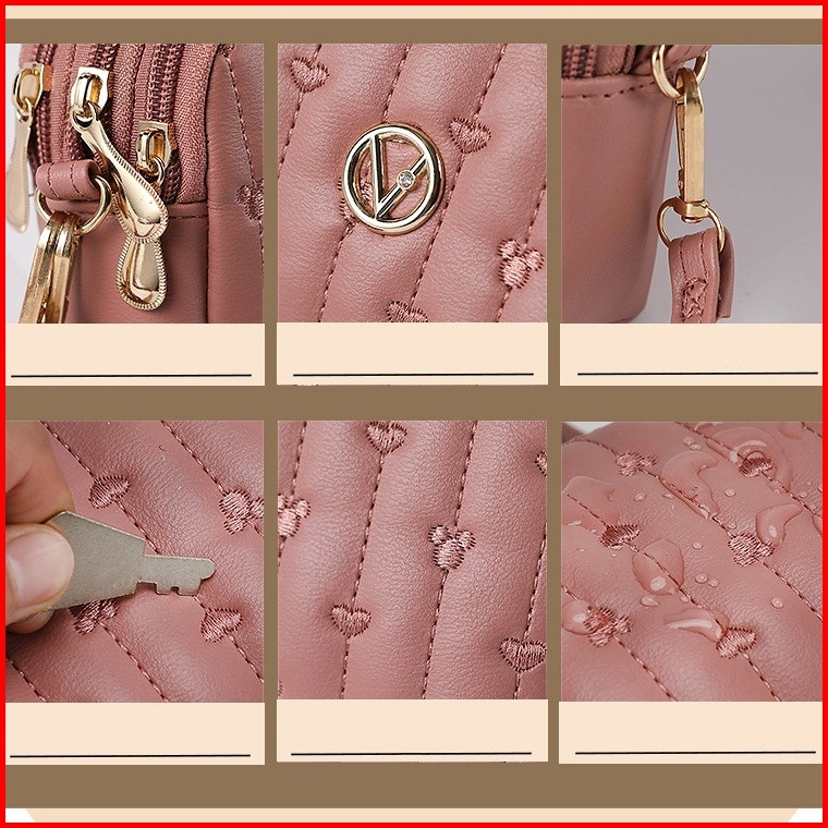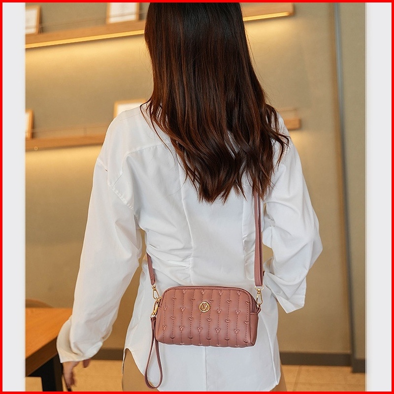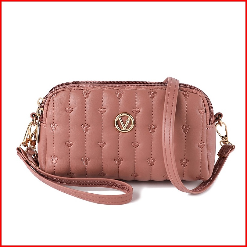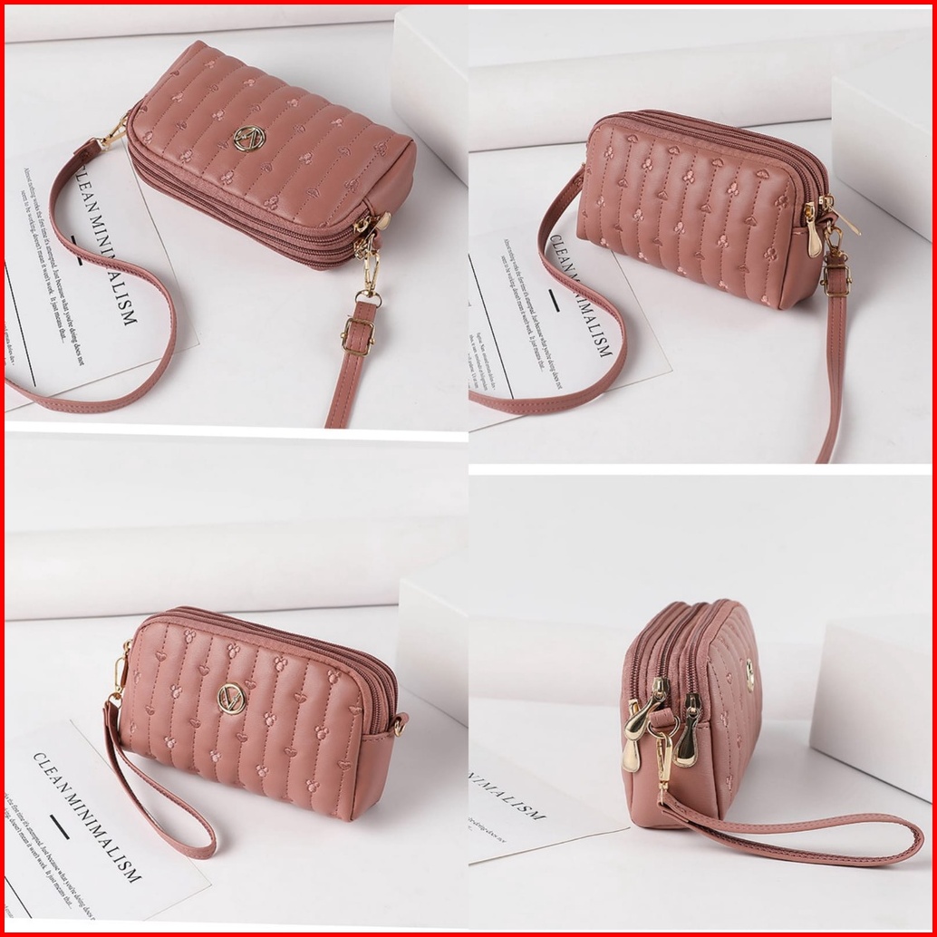 Tas Selempang Wanita Pesta Premium 3 Resleting Kulit Pink Ebersa Ta688p3 Fashion Sling Bag Korea Remaja Kekinian Murah C