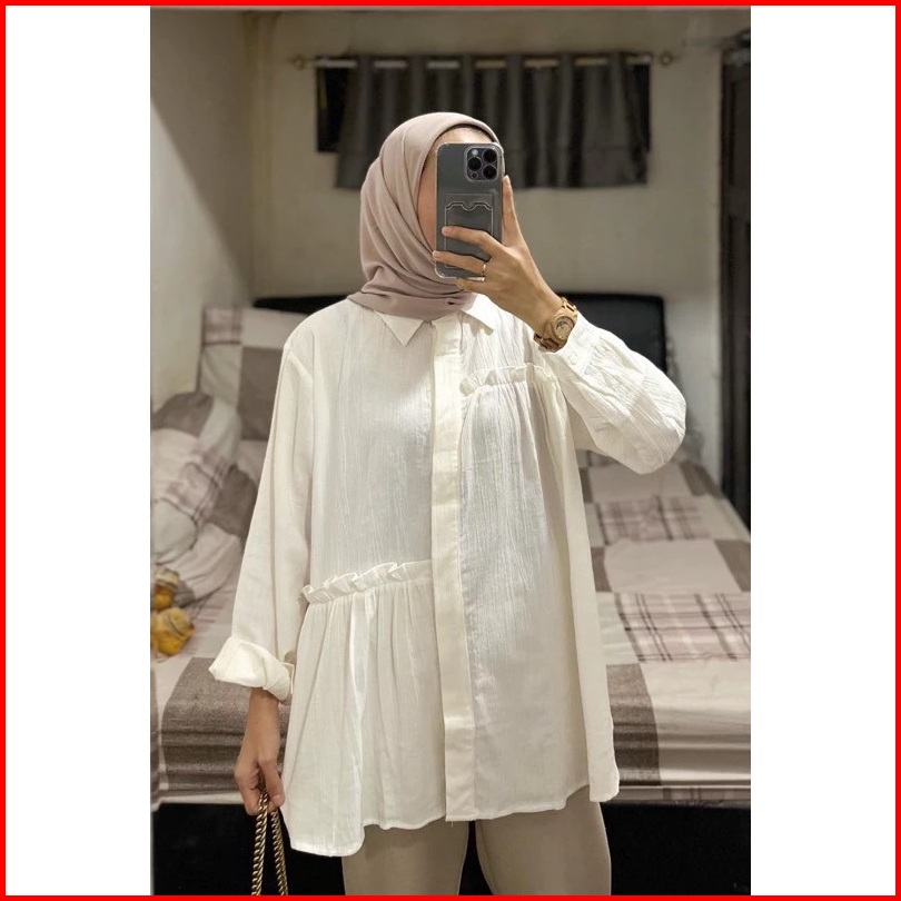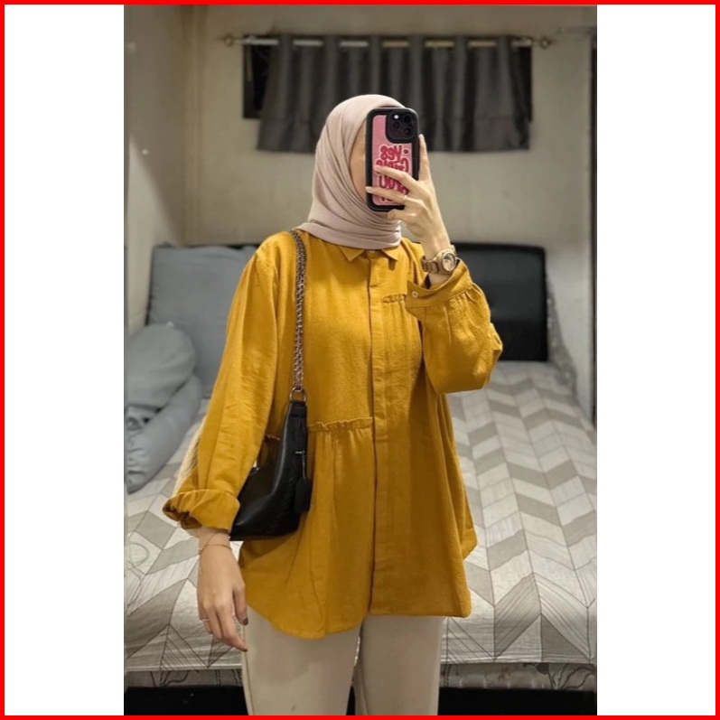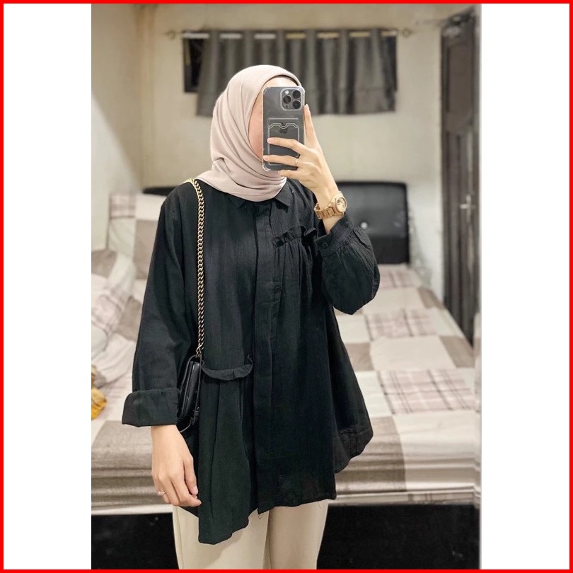 Carren Top Linen Shirt - Atasan Wanita Oversize - Blouse Kemeja Wanita