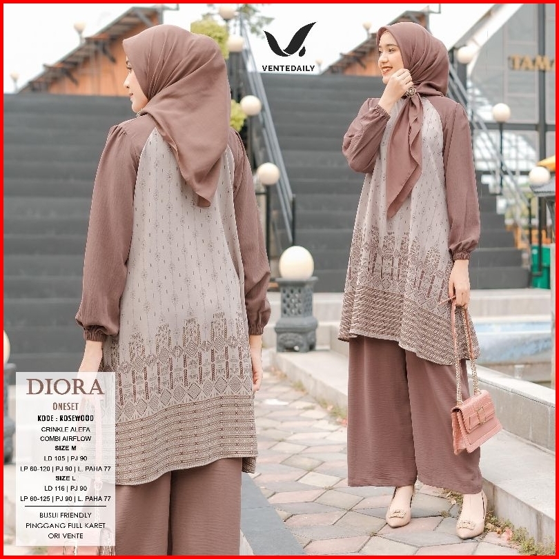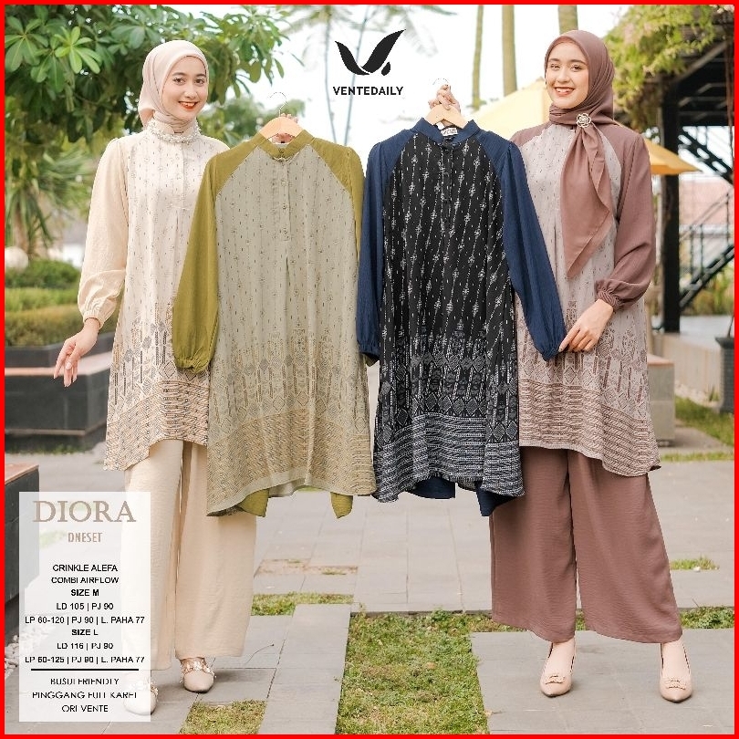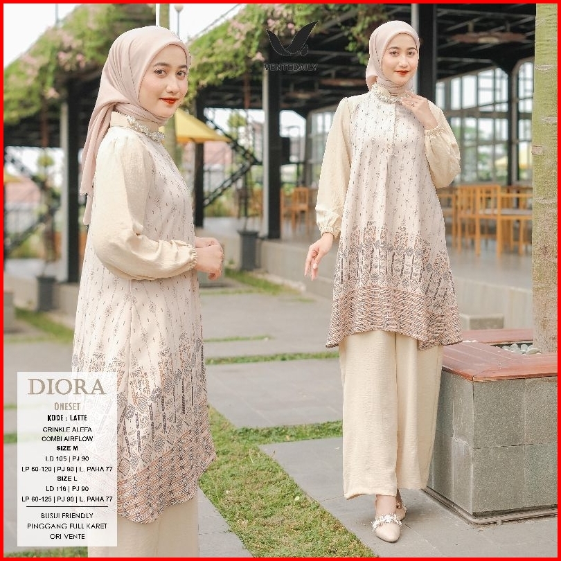 Vente Daily Diora Oneset Setelan One Set Muslim Wanita Kekinian Crinkle Alefa Combi Airflow Ld 105 115 Setelan Busui Bum