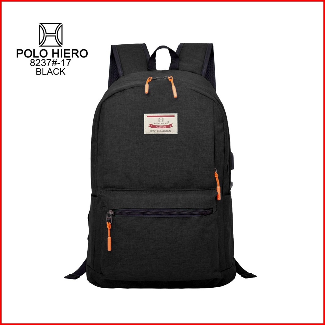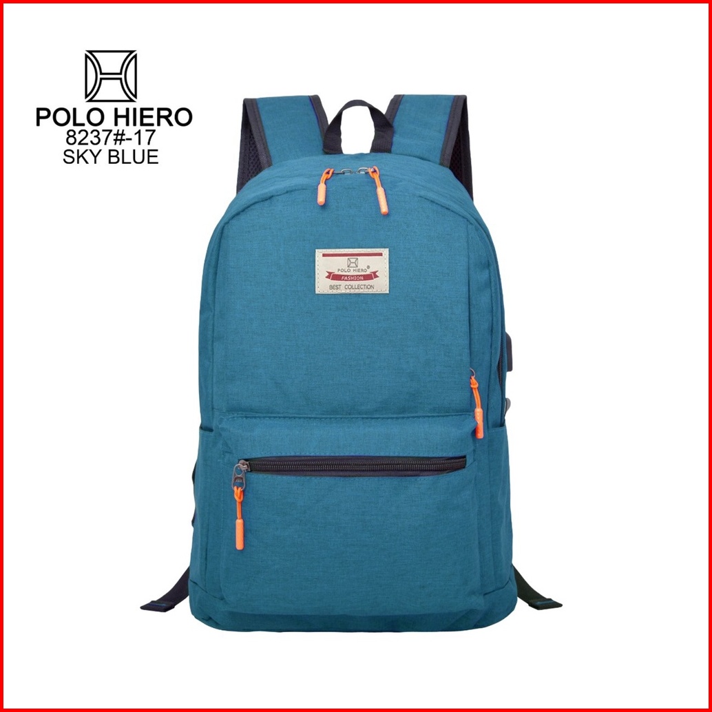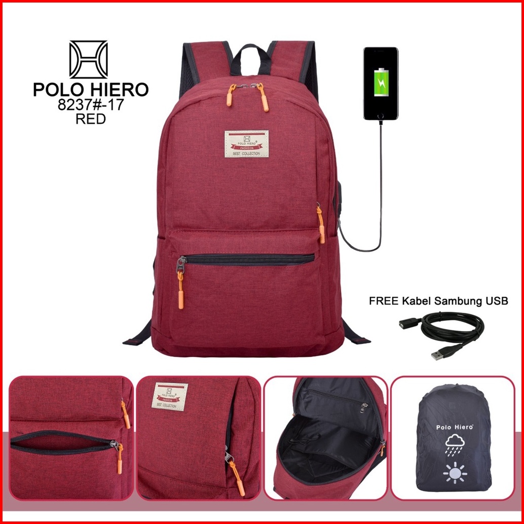 Polohiero Tas Pria Sekolah Ransel Polo Hiero 8237 Free Kabel Usb Free Rain Cover