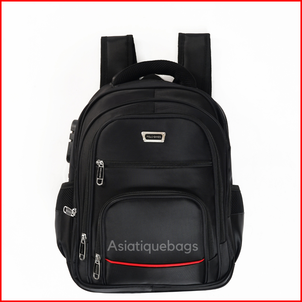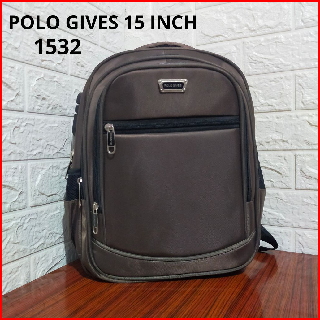 Tas Ransel Pria 15 Inch Polo Gives- Gratis Raincover Kabel Usb Dan Kunci Tas - 100 Import