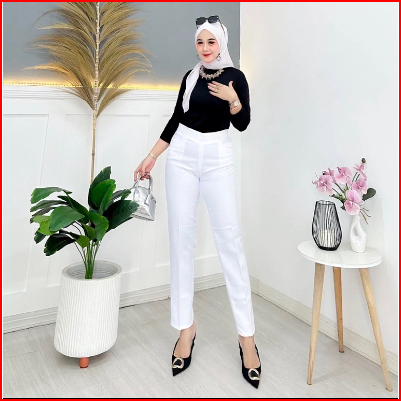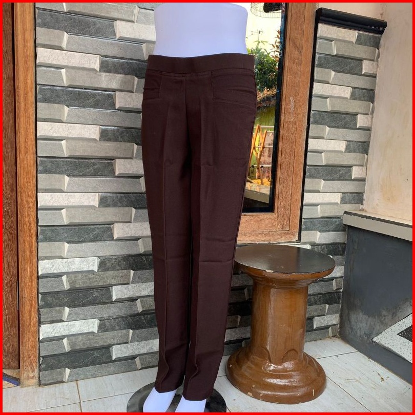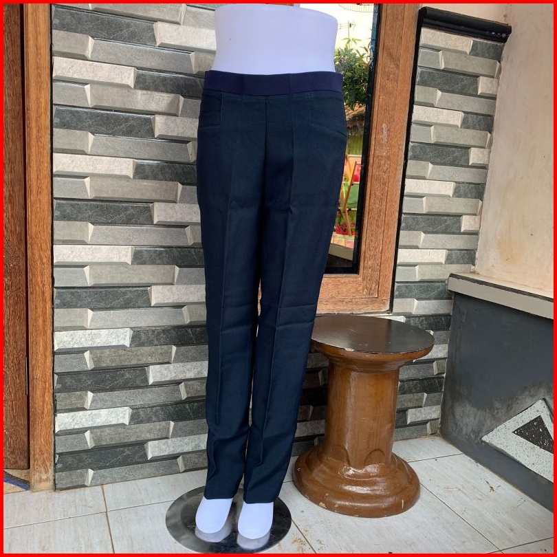 Celana Kerja Wanita Kantor Celana Bahan Pinggang Karet Highwaist Ada Jumbo