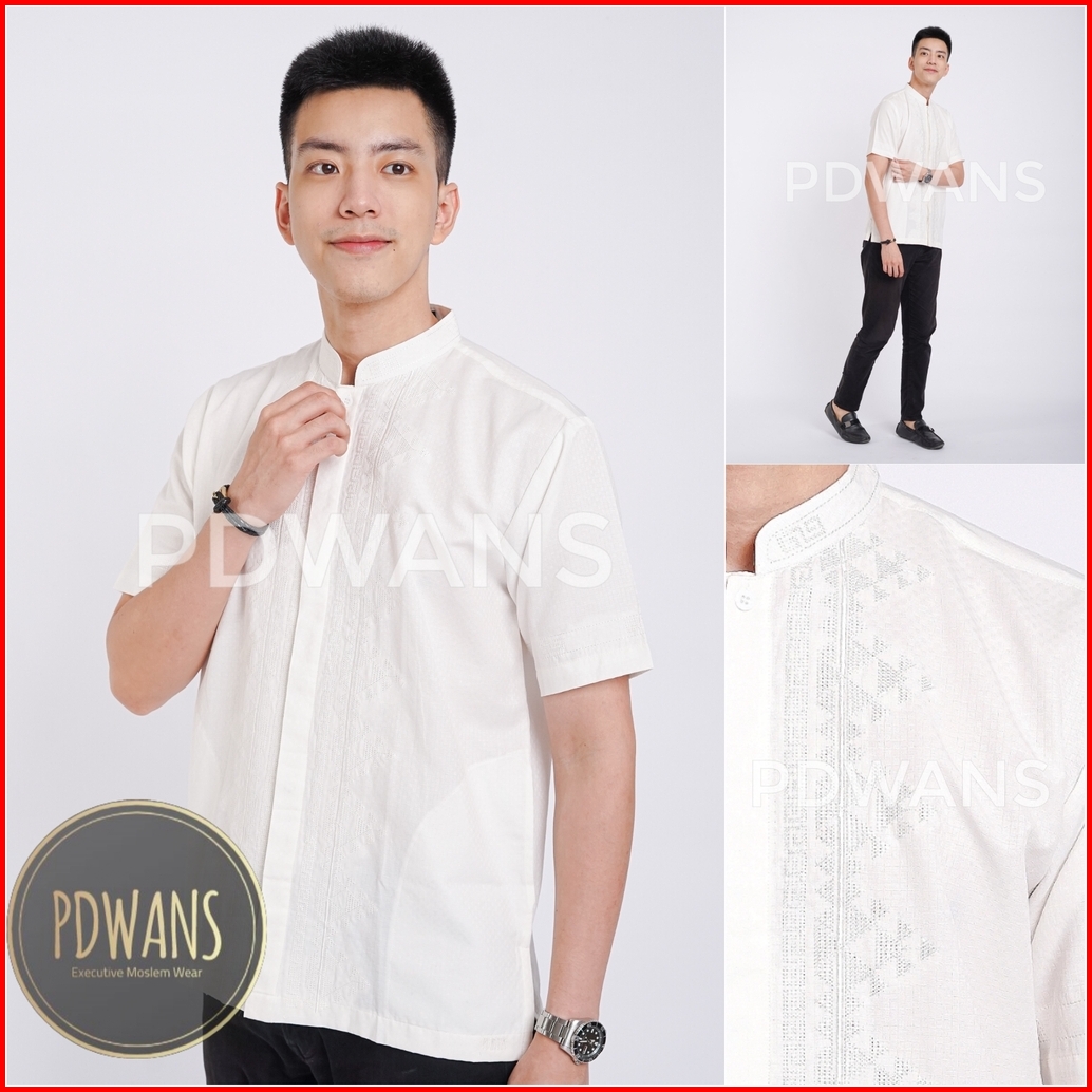 Baju Koko Lengan Pendek Putih Bordir Senada Pdwans Rd22