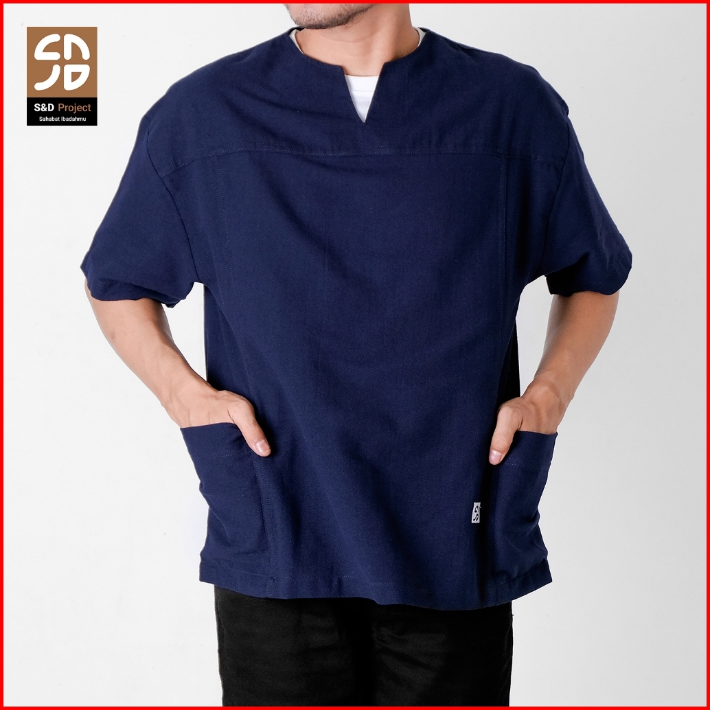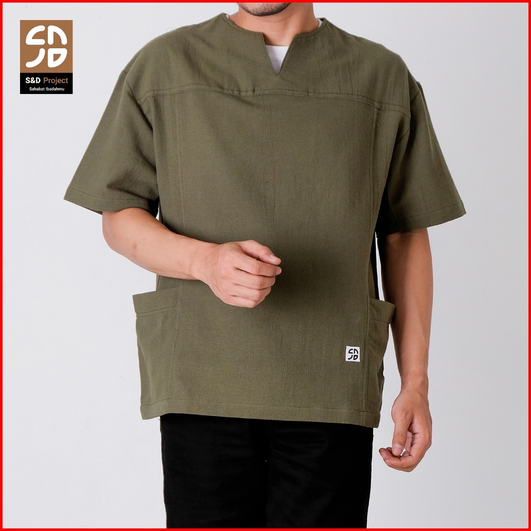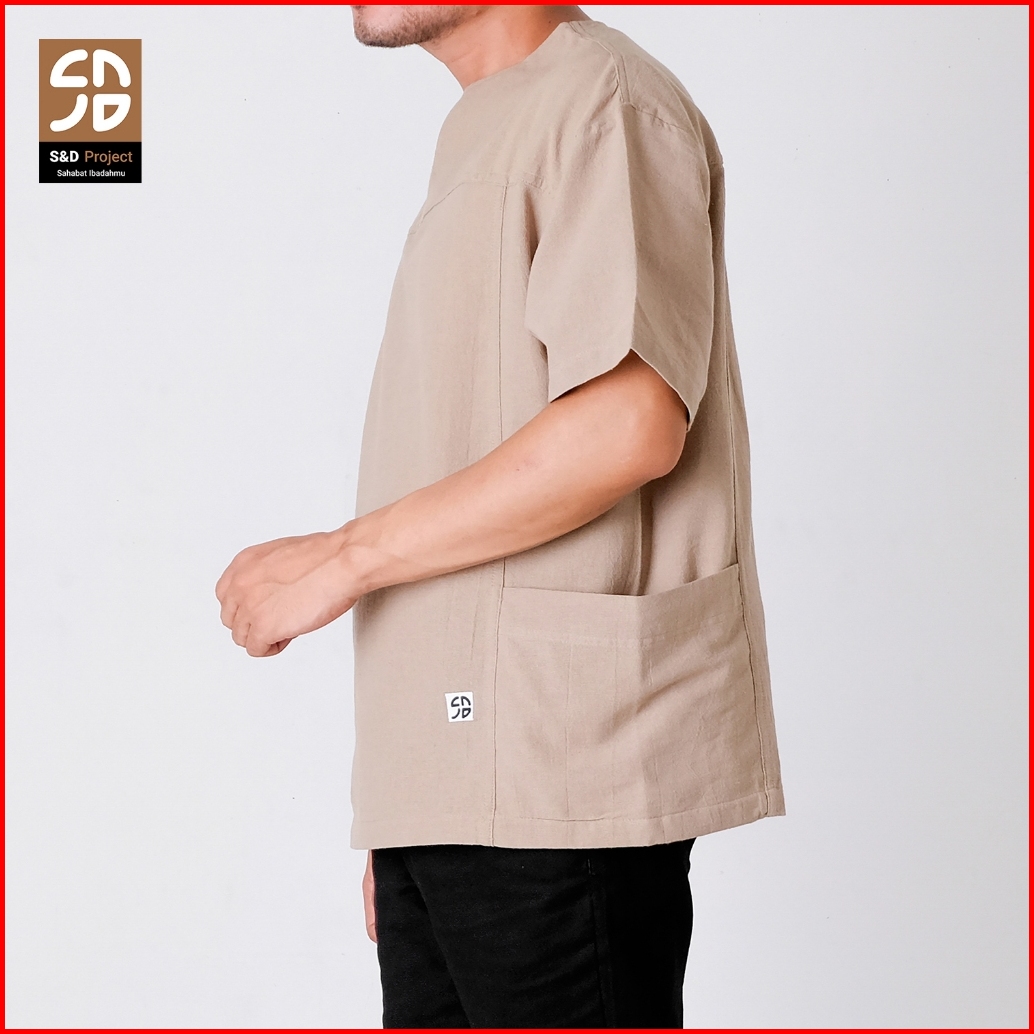 S D Project Baju Koko Ghassan Oversize Bahan Linen Fumiko Polos Lengan Pendek Leher V Collarless Bersaku Ukuran M L Xl -