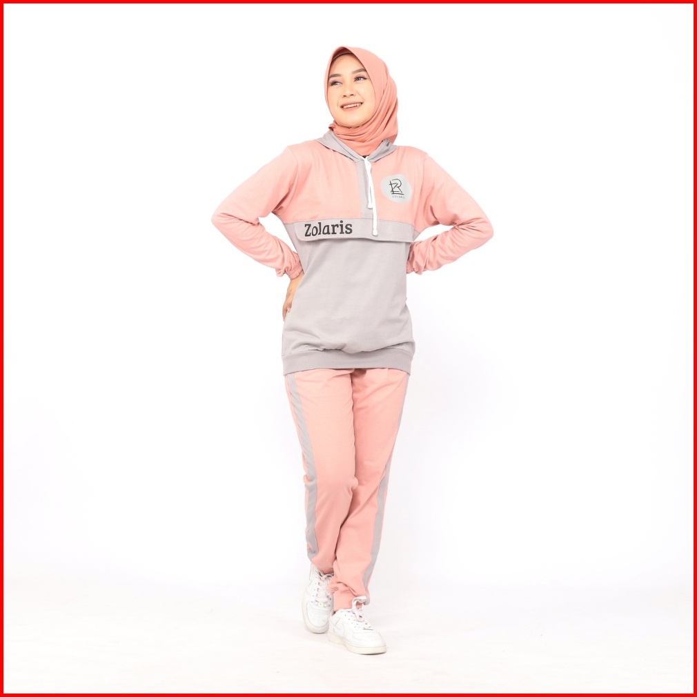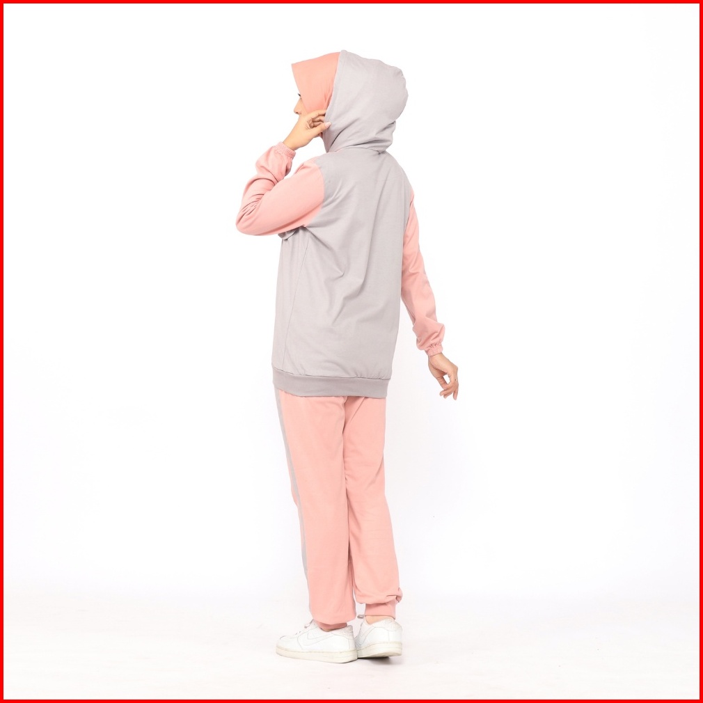 Luna Set - Baju Olahraga Hoodie Wanita One Set Muslim Training Seragam Senam Gowes Jogging