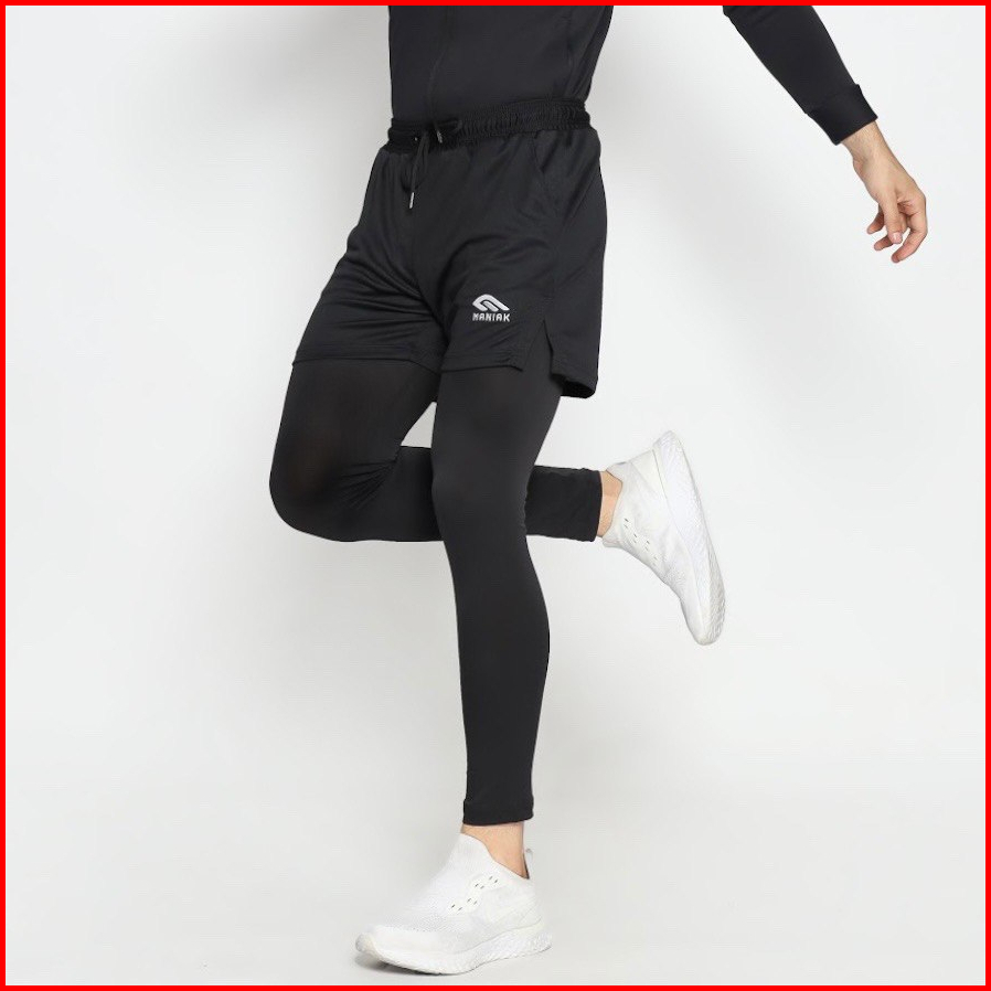 Maniak Celana Pendek Olahraga 2in1 Legging Panjang Pria Wanita Sport Running Lari Gym Fitness Mi-rpg
