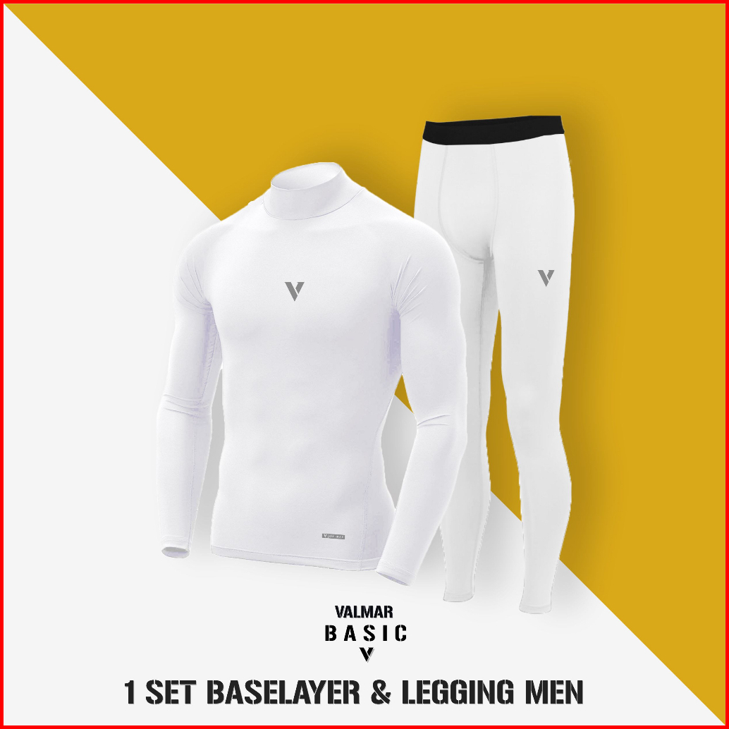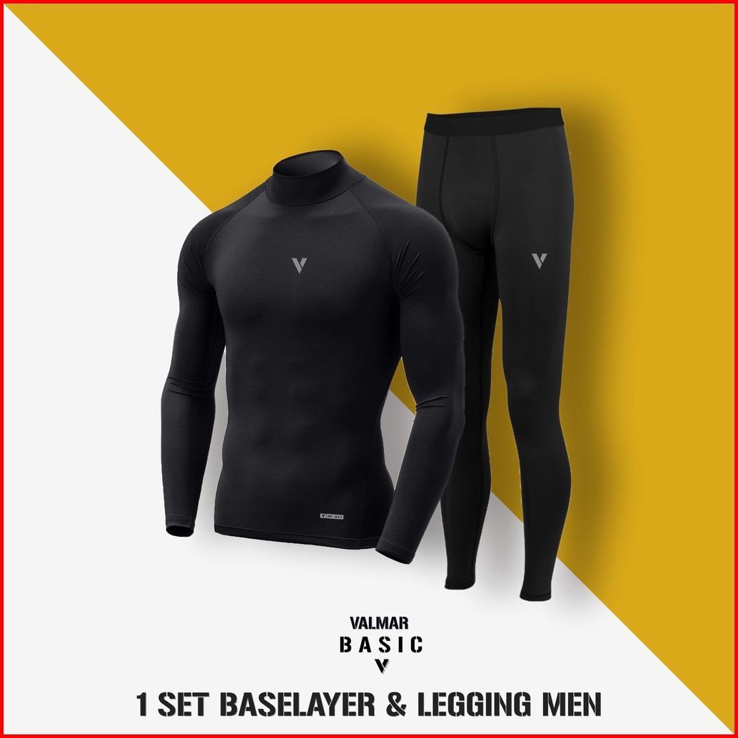 Satu Set Baselayer Dan Legging Pria Basic Original Valmar 1 Paket Manset Leging Olahraga Bahan Spandex Baju Ketat Mangse