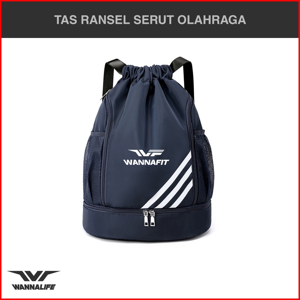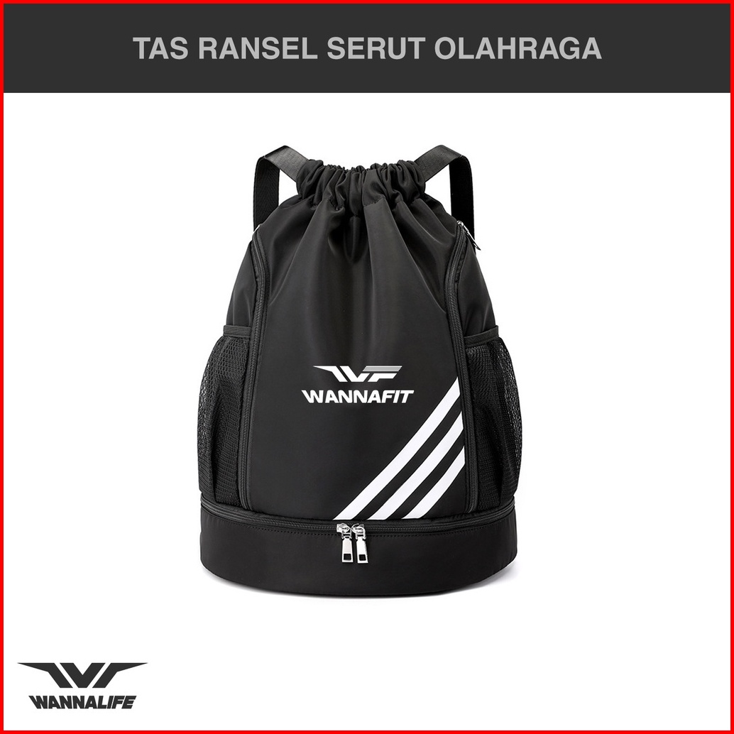 Tas Ransel Serut Olahraga Wannalife Bagpack Travelling Anti Air Gym Sepak Bola Sepatu 2 In 1 Besar Unisex Fitness