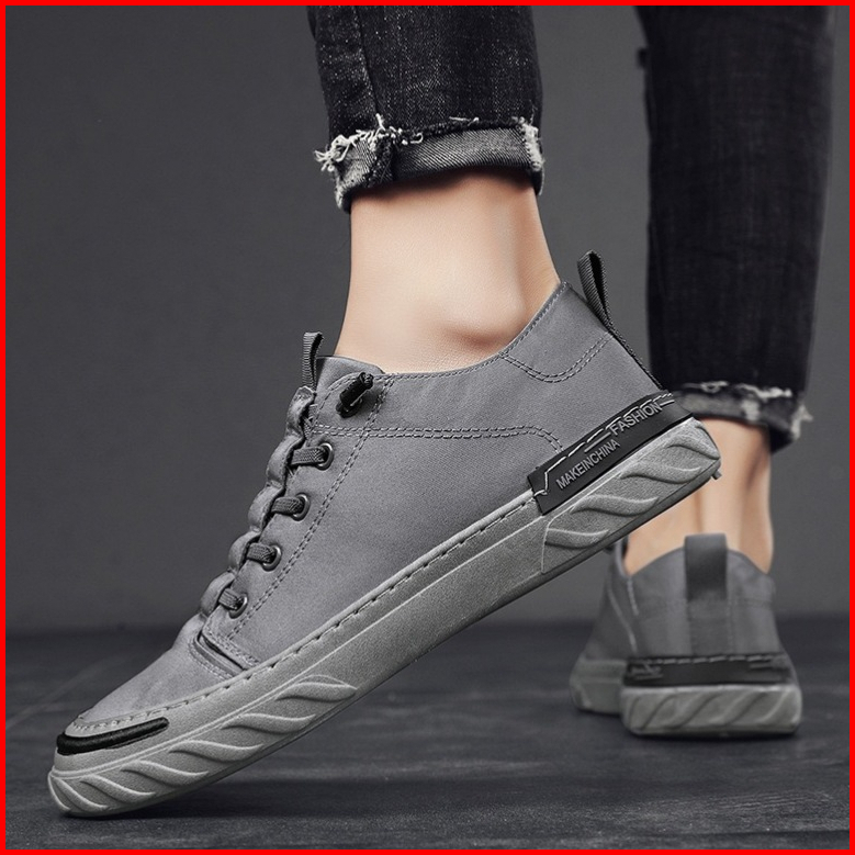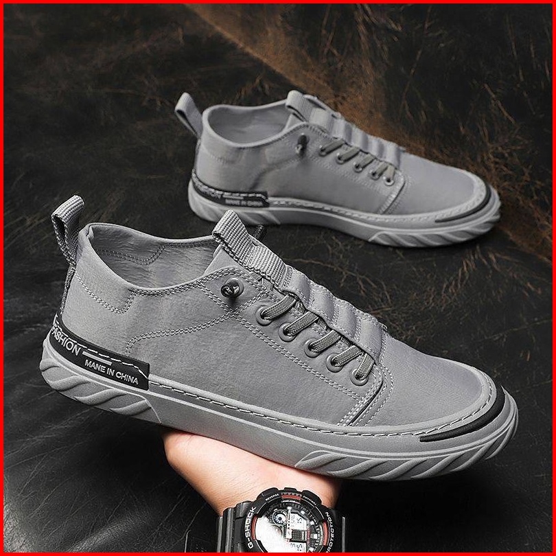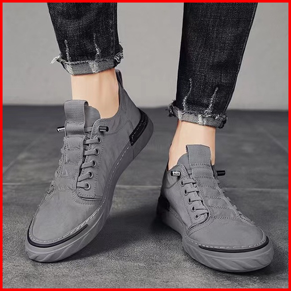 Highland Sepatu Pria Abu Sneakers Sport Fashion Casual Pria Kasual Sepatu Santai Kets Cowok Outdoor Sekolah Kuliah Sepat