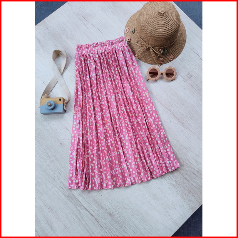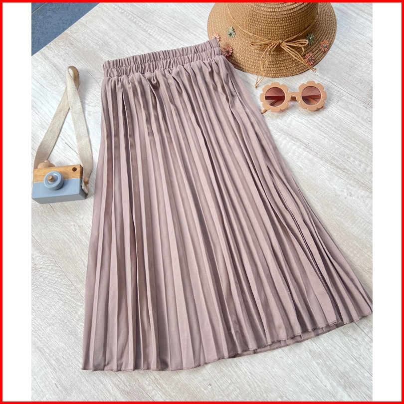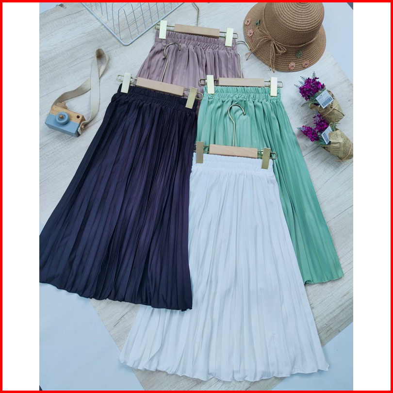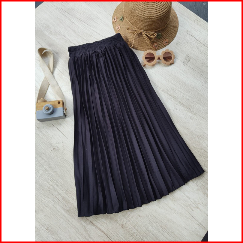 Rok Plisket Panjang Usia 4-12th Motif Polos Bahan Hyget
