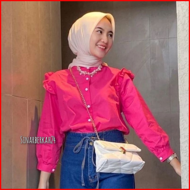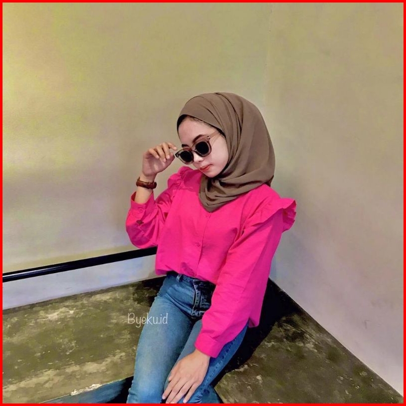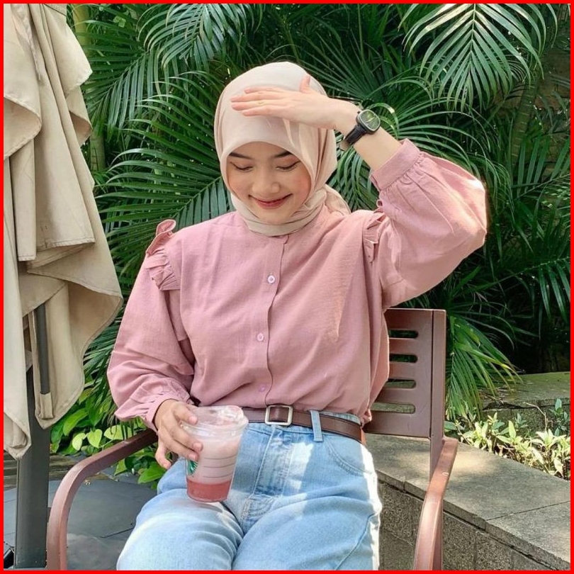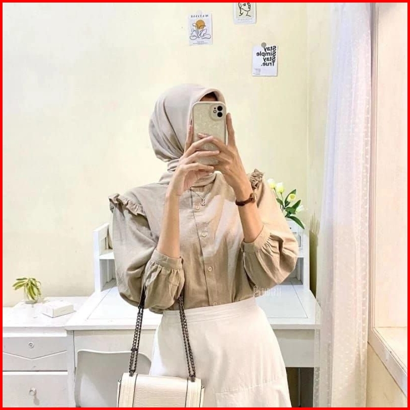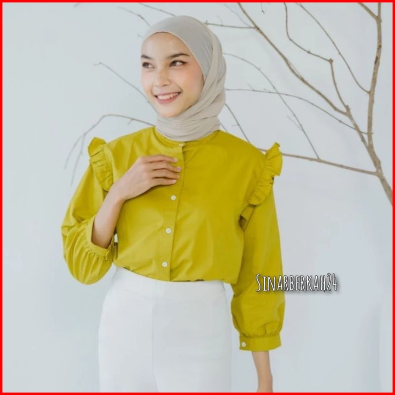 Yurim Blouse Ruffle - Atasan Wanita - Kemeja Linen Basic Lengan Panjang