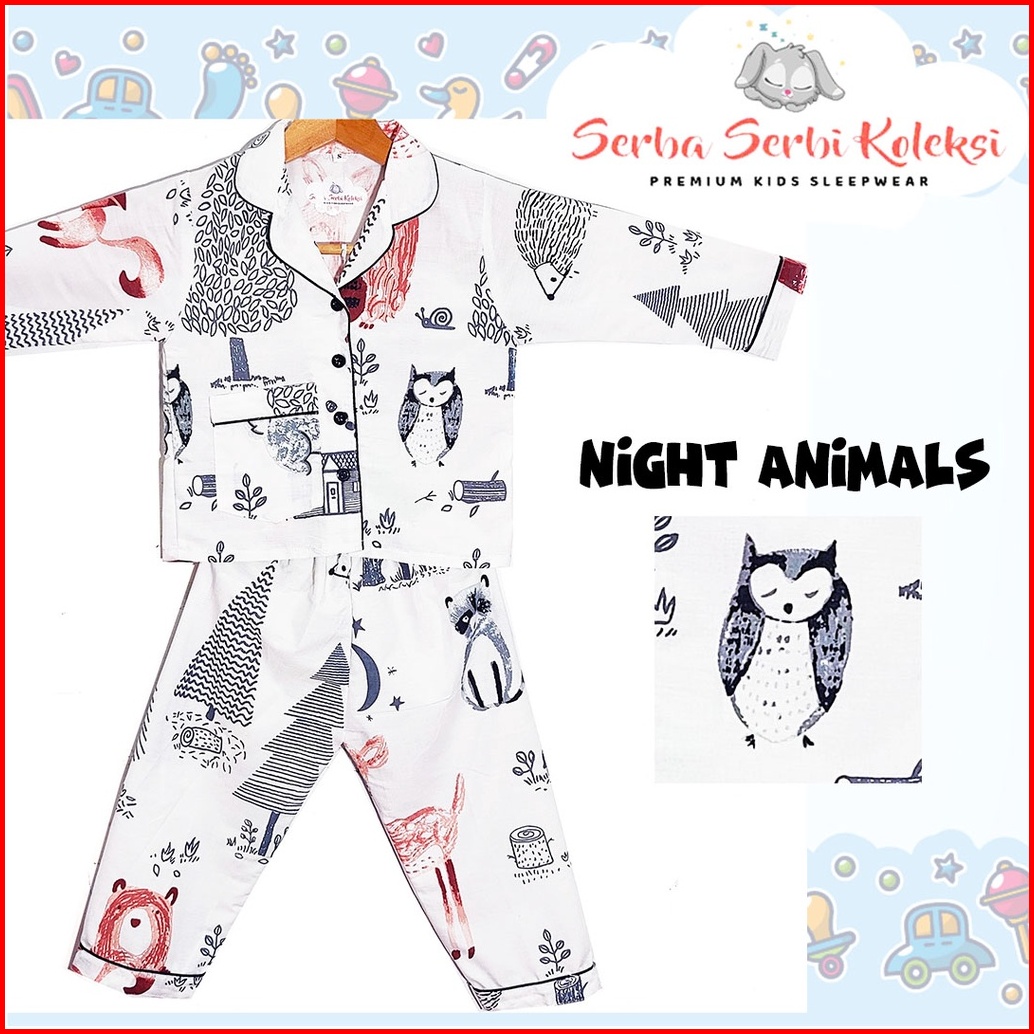 Piyama Anak Motif Buah Night Animals Katun Premium Lengan Panjang Baju Tidur Anak - Spp 6