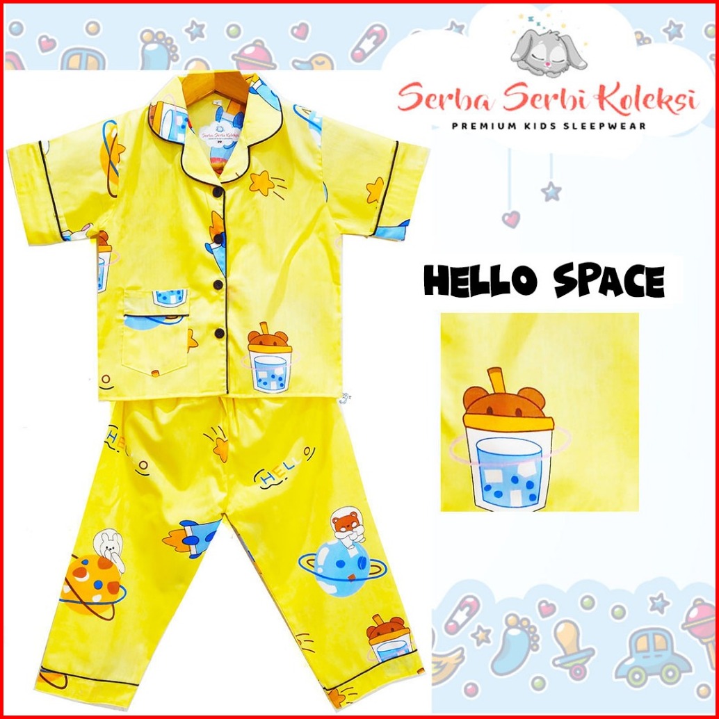 Piyama Anak Motif Hello Space Katun Premium Baju Tidur Anak - A15