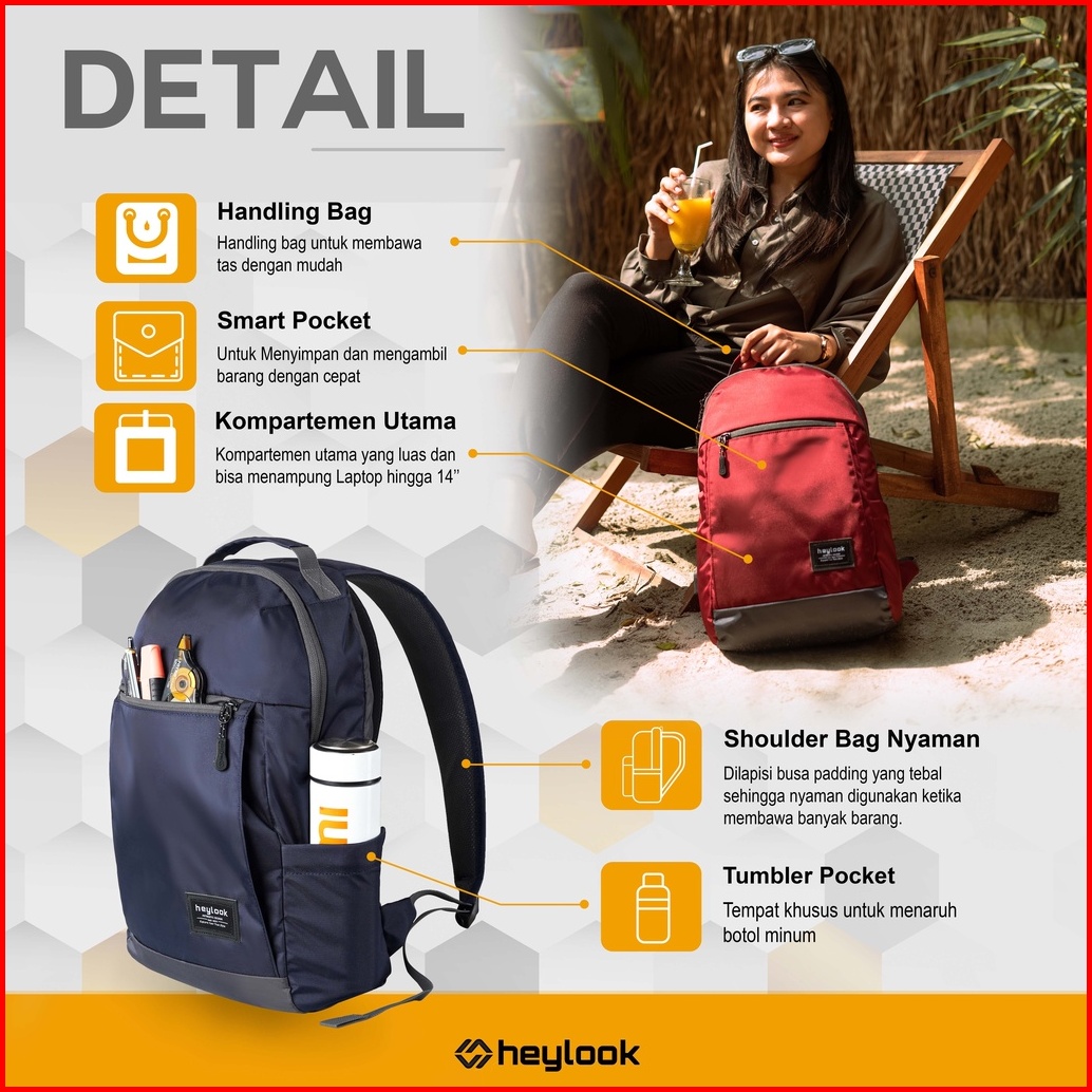 Heylook - Free Raincover Backpack Lexa Tas Ransel Laptop Pria Wanita Tas Leptop 14-16 Inch Tas Punggung Perempuan Tas Se