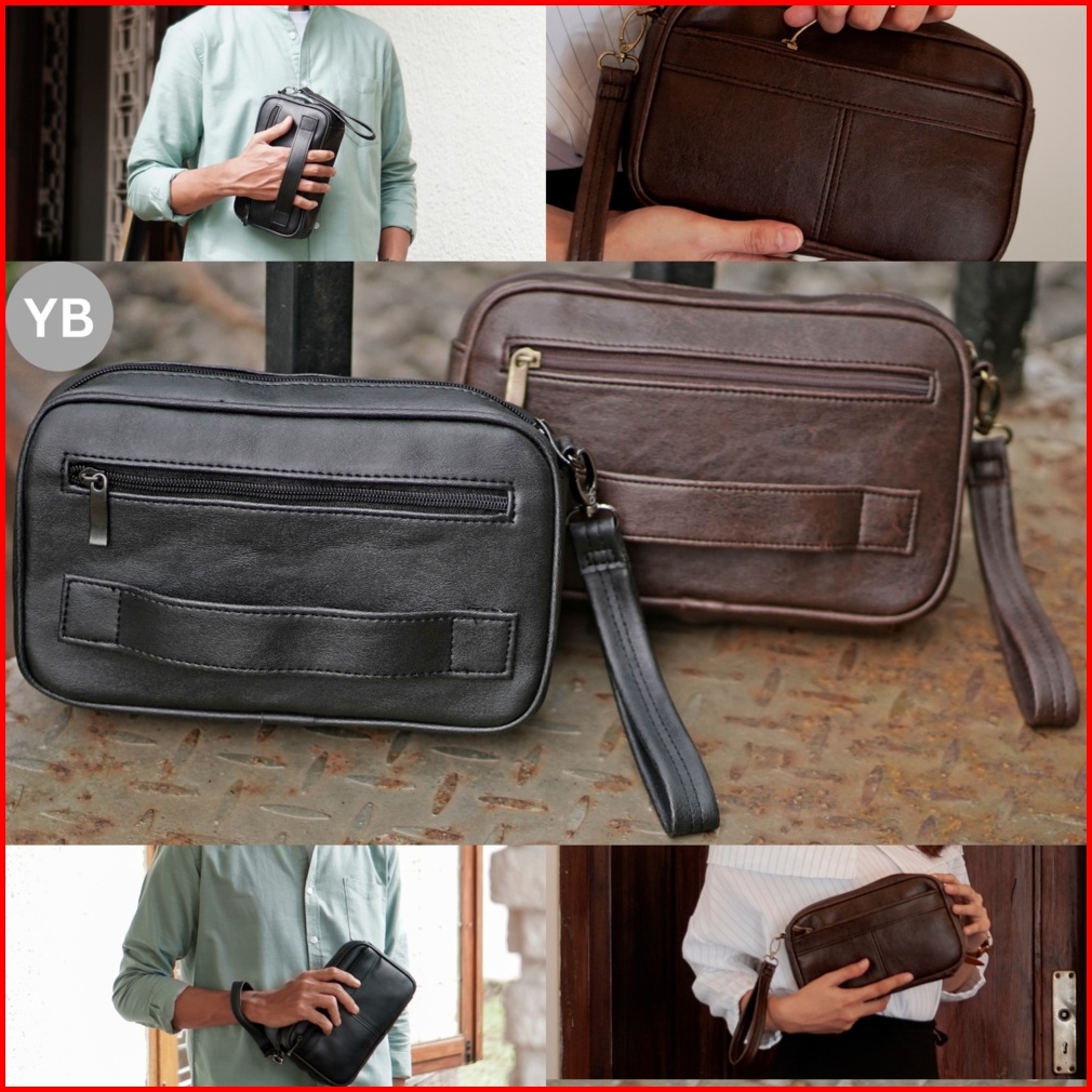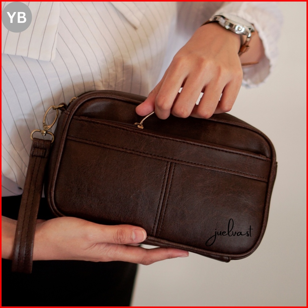 Clutch Pria Wanita Clutch Kulit Pouch Handbag Wristlet Premium Kulit Pu Leather Hitam Coklat