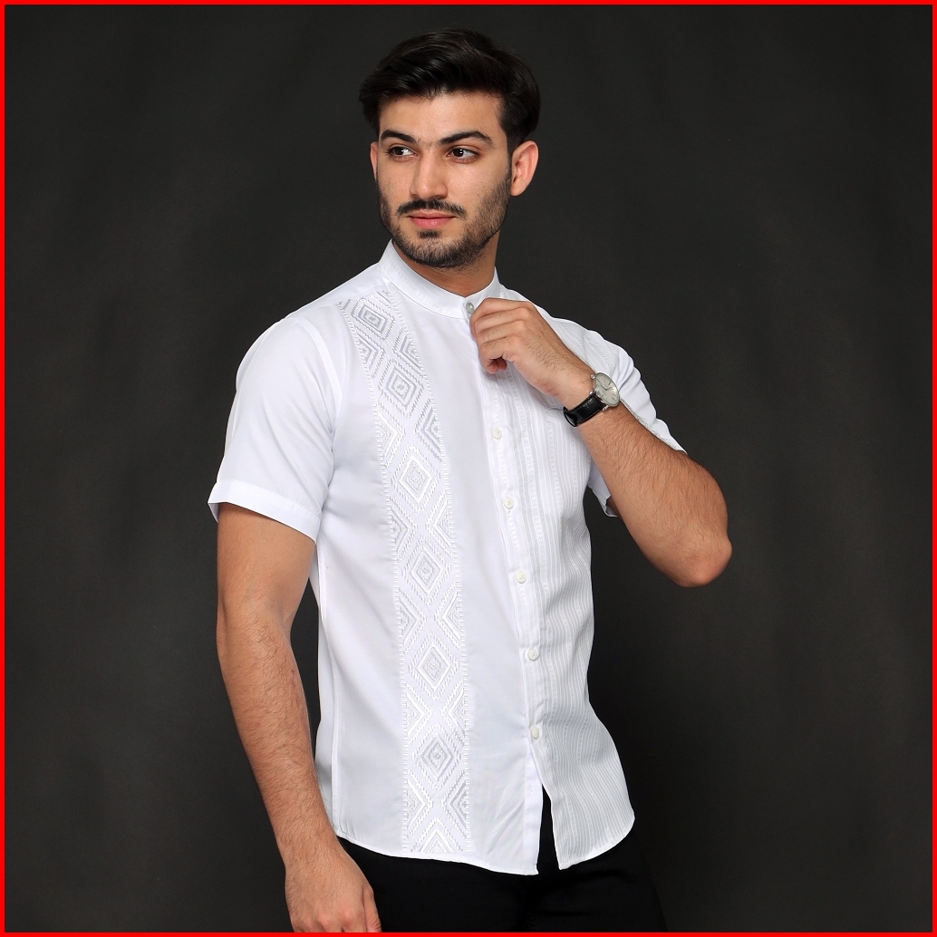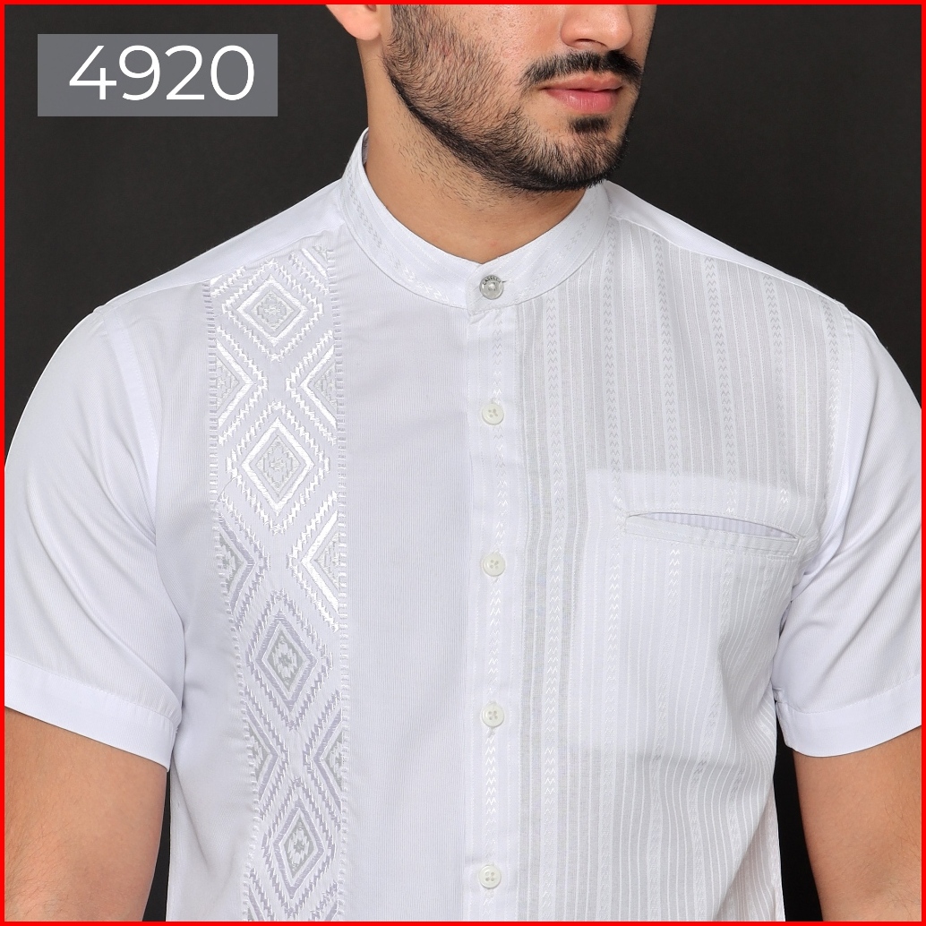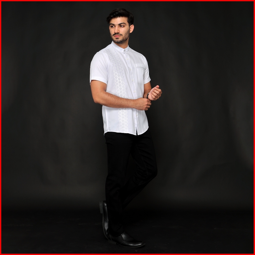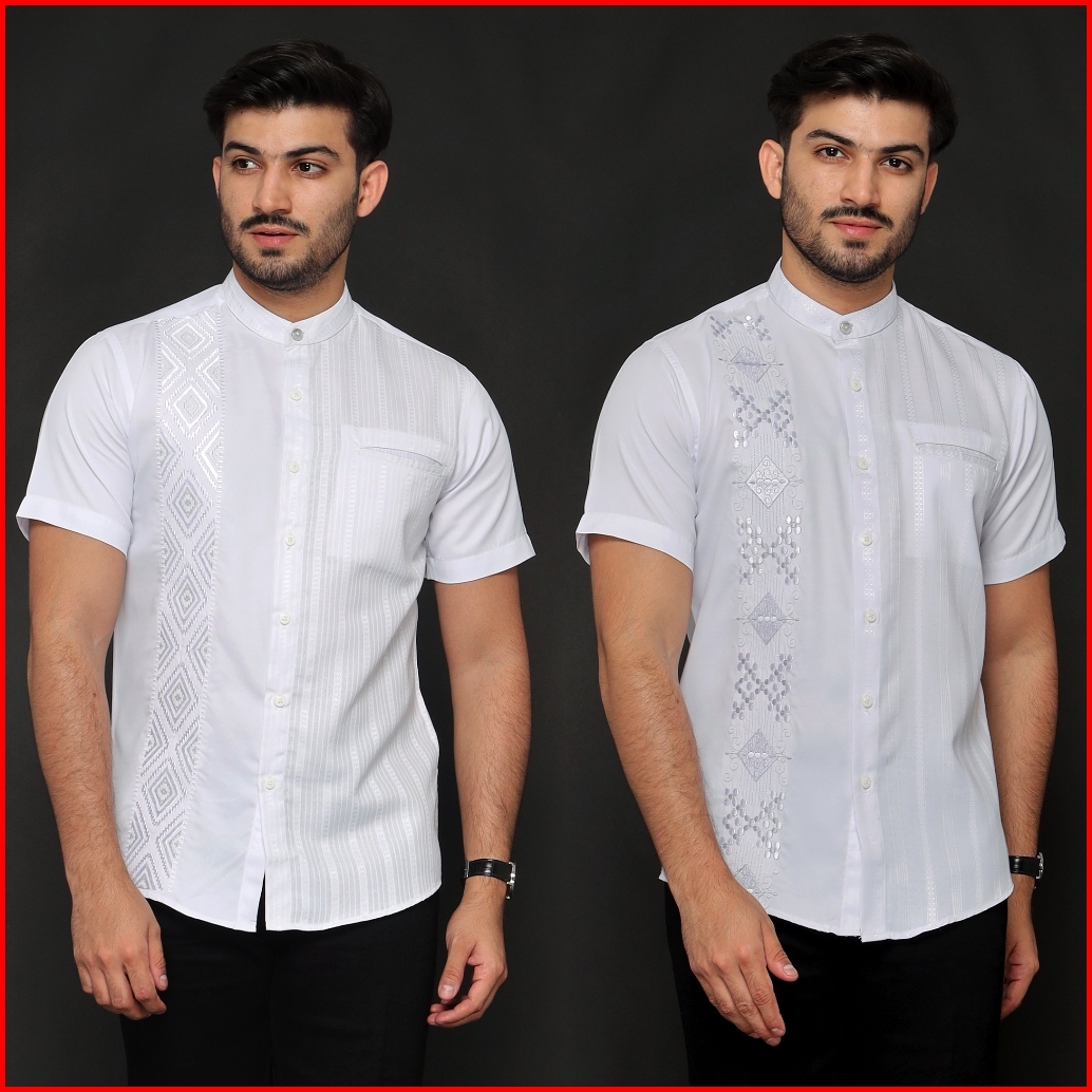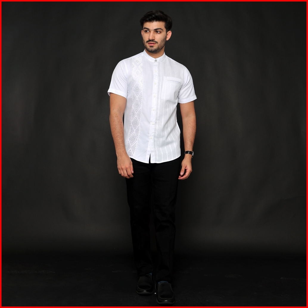 Casella Baju Koko Pria Lengan Pendek Arabesque White Design Baju Koko Putih Lengan Pendek