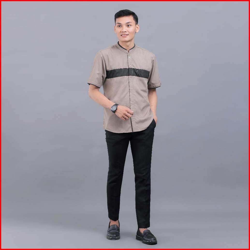 Baju Koko Pria Elrumi Lengan Pendek Motif Hanif Warna Coklat
