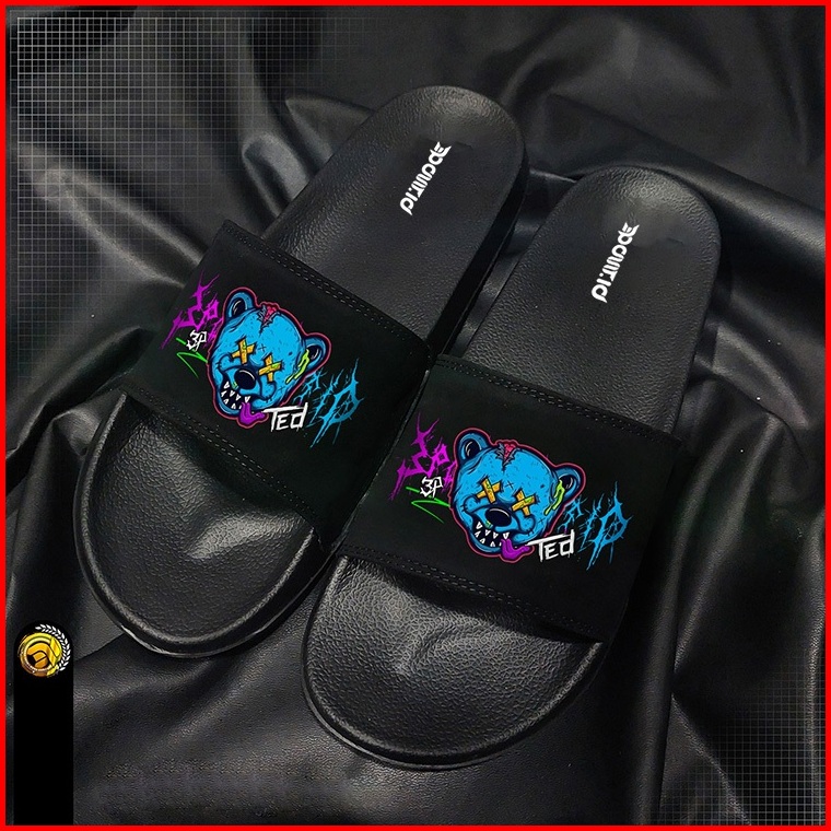 3point.id - Sandal Slop Pria Sandal Slide Pria Sandal Slip On Sendal Slide Blue Bear