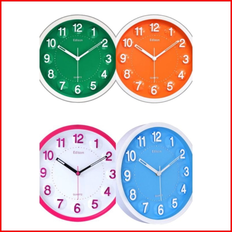 Jam Dinding Edison 292t D 30cm 320t D 32cm Dan 290t D 29cm Bulat Angka Timbul Warna Warni Bonus Baterai.