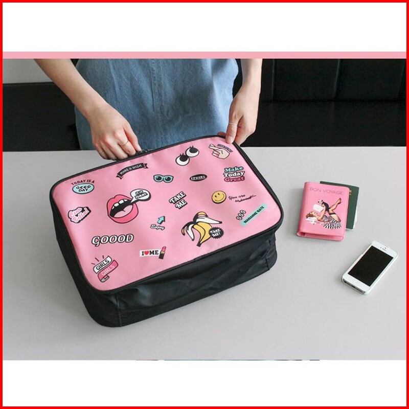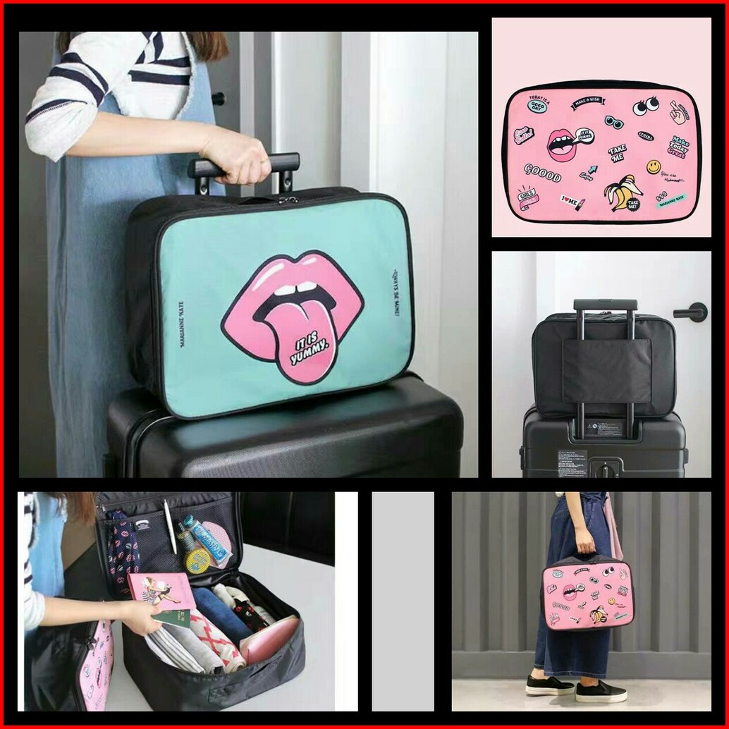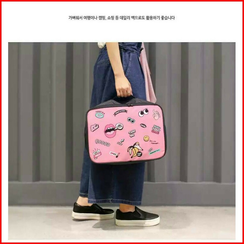 Size L Korean Cute Cartoon Portable Travel Bag Handcarry Bag Tas Travel Koper