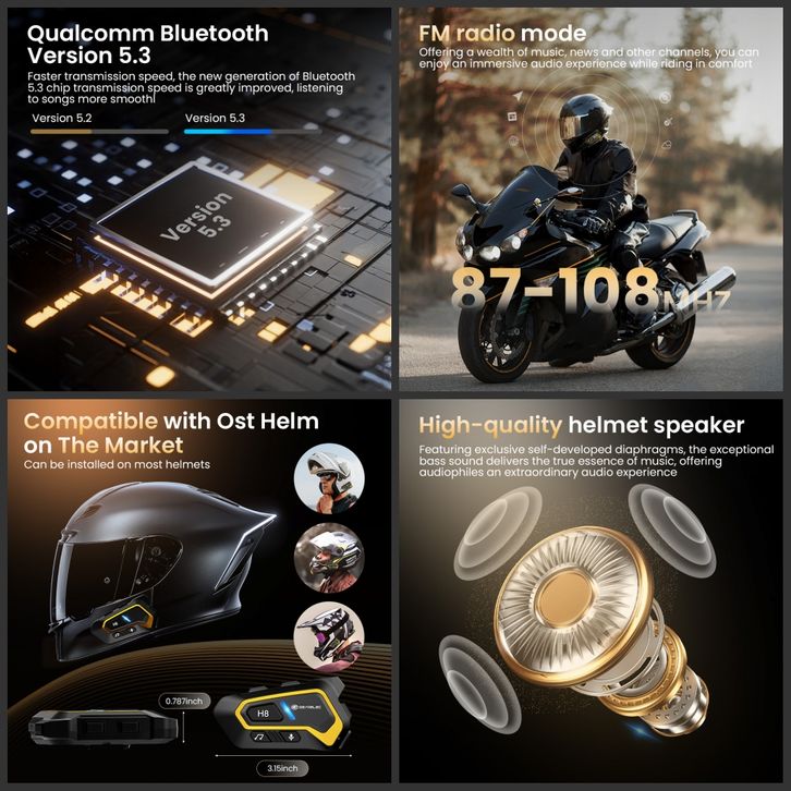 GEARELEC H8 Intercom Helm Bluetooth 6 riders 1500m Bluetooth interkom music sharing dengan Radio FM