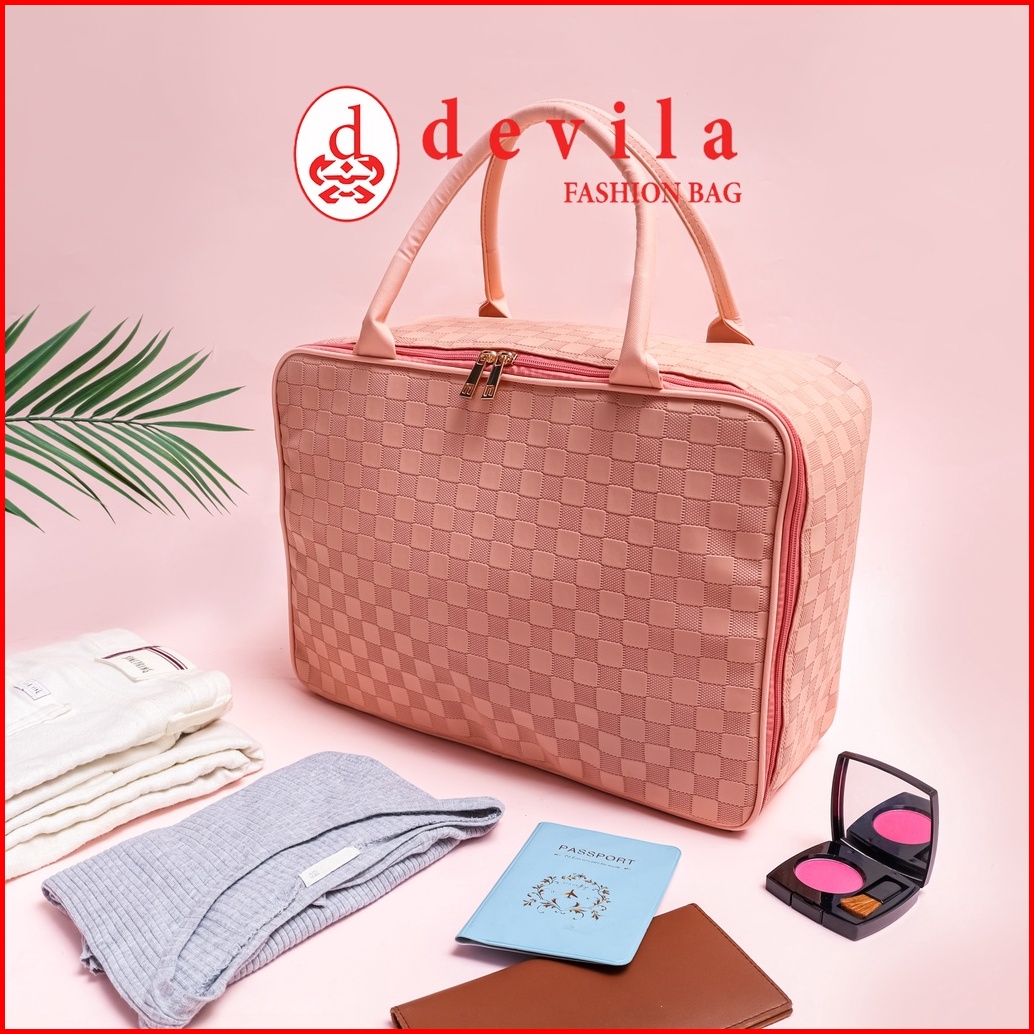 Dvla Luxury Nude Pink Boxes Waterproof Travel Bag Medium Size - Tas Koper Motif Kotak Mewah Murah