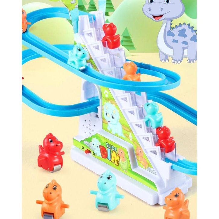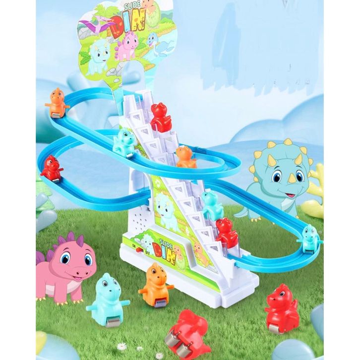 [tma] Mainan Anak Seluncuran Otomatis Penguin Naik Tangga Dinosaurus Track Balap Berlampu dan Musik / Mainan Luncuran Ra