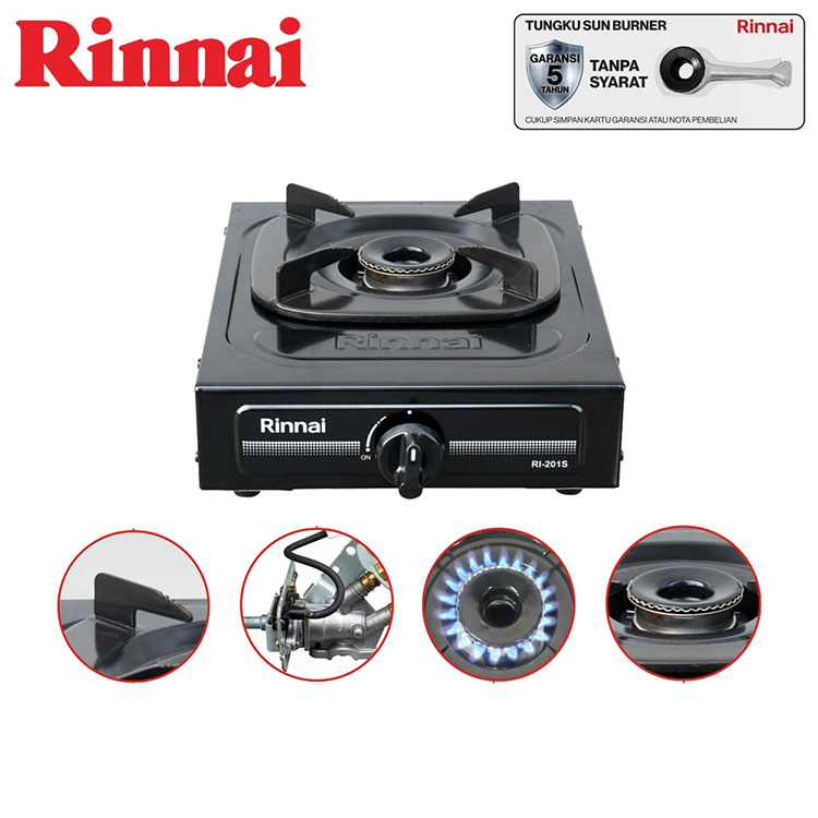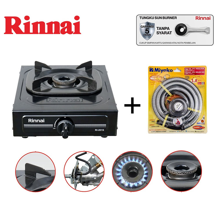 Kompor Gas RINNAI 1 Tungku RI-201S + Selang Regulator Harga Grosir Termurah