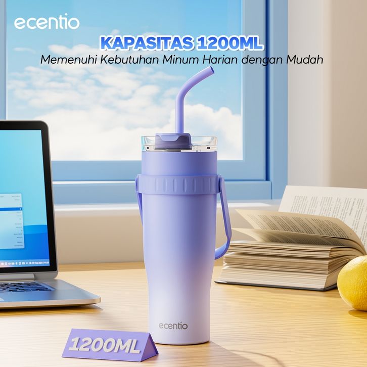 Tumbler Ecentio Stainless Steel 304 Big Mac Series Botol Minum Portable 1.2L Tahan Dingin 24 Jam