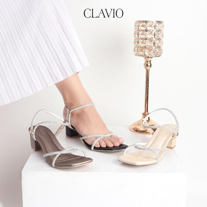 CLAVIO Moana Heels Wanita Hitam Gold Bronze – Heels Elegan Premium untuk Pesta, Kondangan, Formal & Daily Fashion