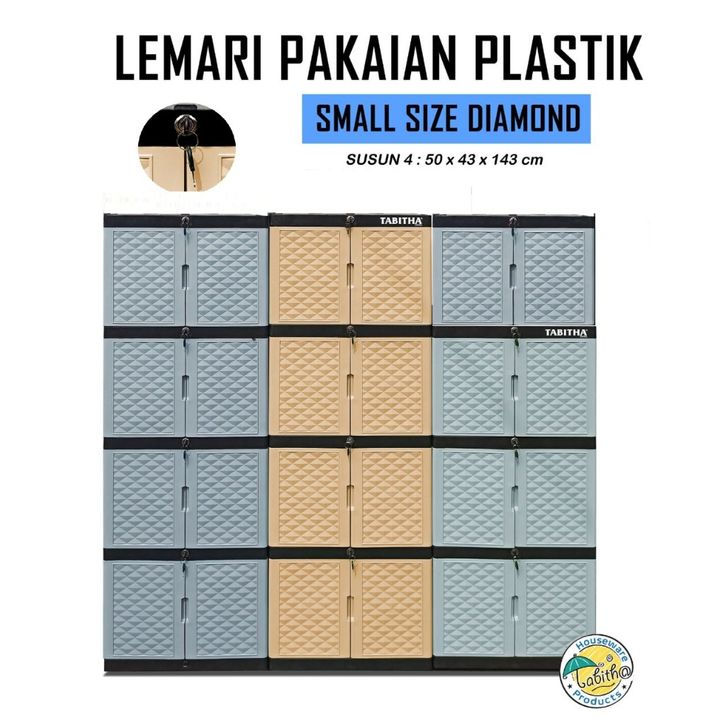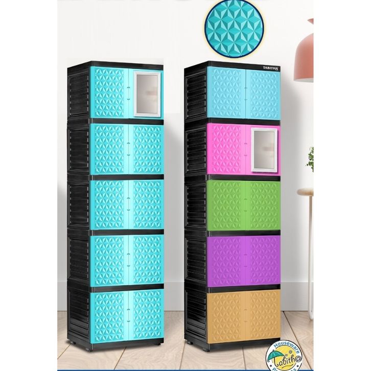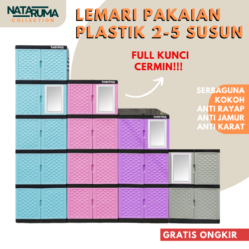 Tabitha - Lemari Pakaian Plastik 2-5 Susun Full Kunci Dan Kaca Cermin Desain Menari Anti Rayap/Jamur Serbaguna Termurah
