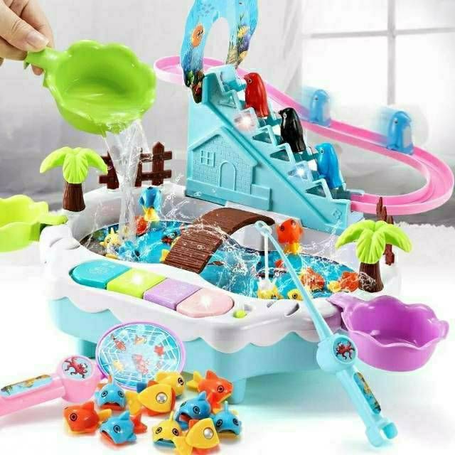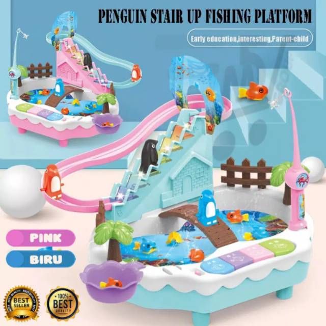 Promo Mainan Anak 2 in 1 Pancingan Ikan Magnet Kombi Track Racers Penguin