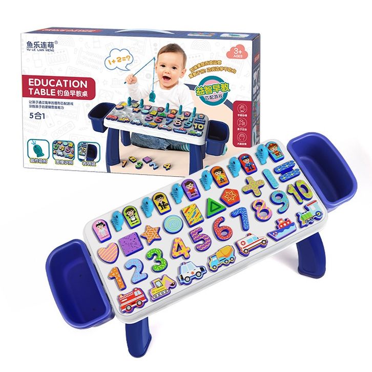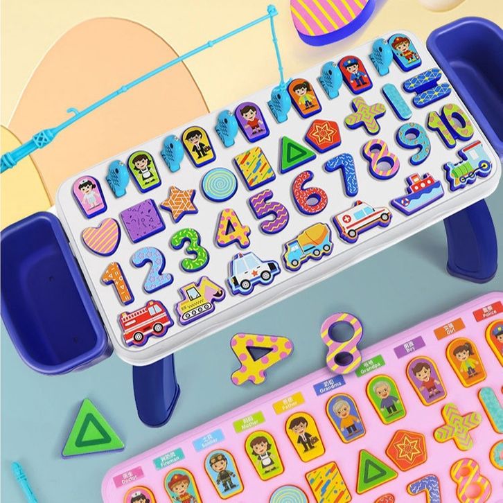 Mainan Papan Dan Meja Edukasi Anak Huruf Angka Warna Bentuk Pekerjaan Dan Pancingan Ikan Magnet All In One / Mainan Bela