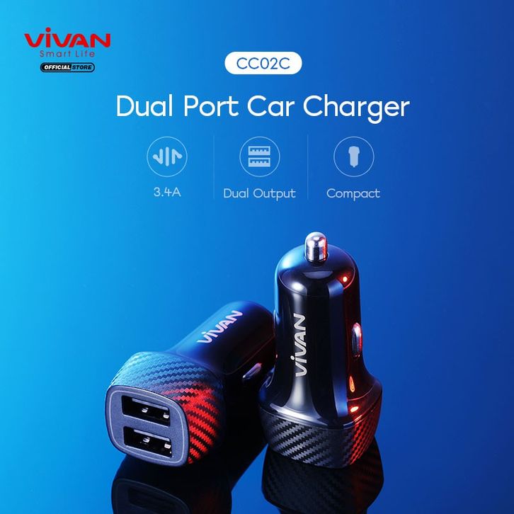 CAR CHARGER VIVAN CC02C 3.4A DUAL USB SMART IC QUICK CHARGING MOBIL ORIGINAL GARANSI RESMI 1 TAHUN READY STOCK